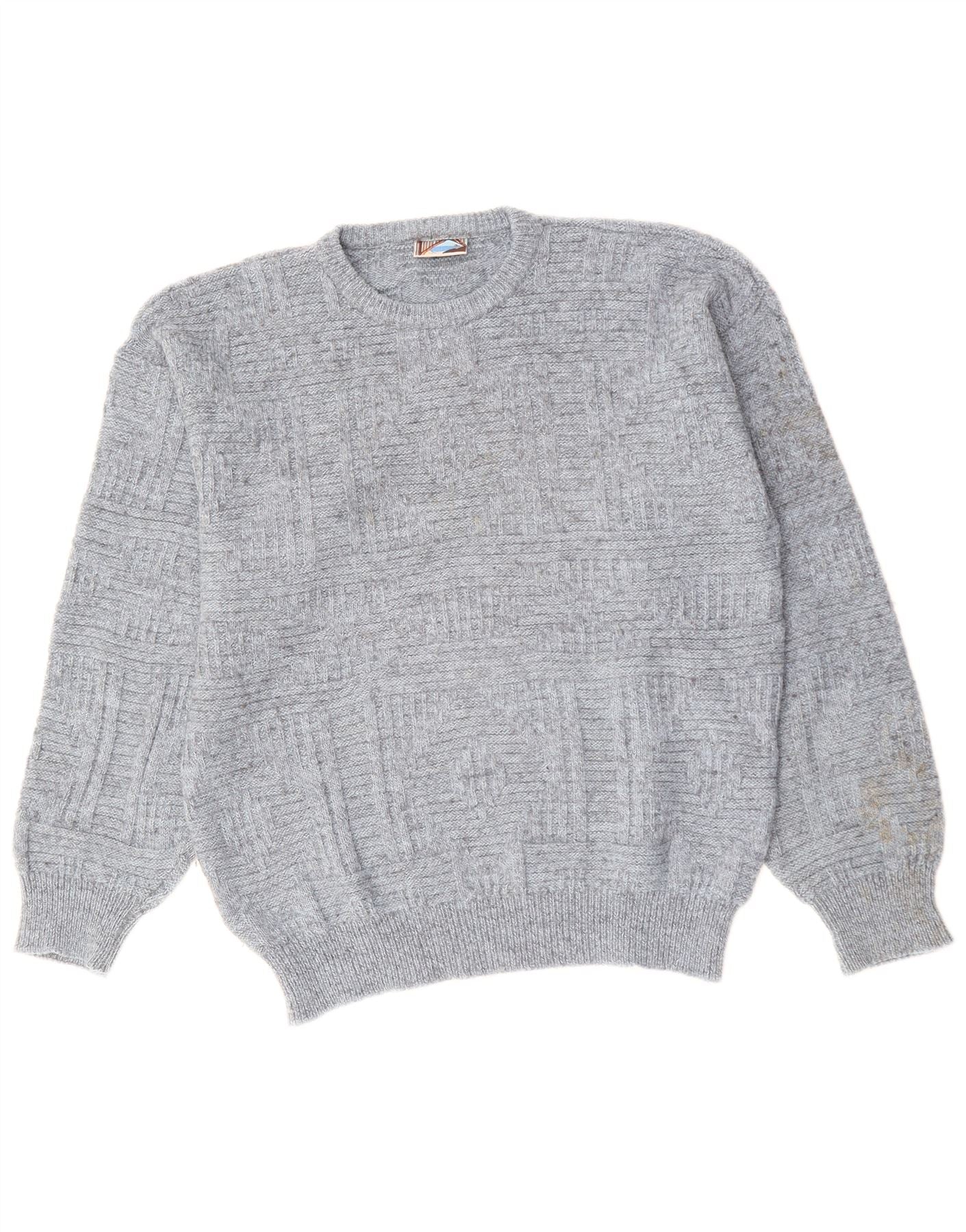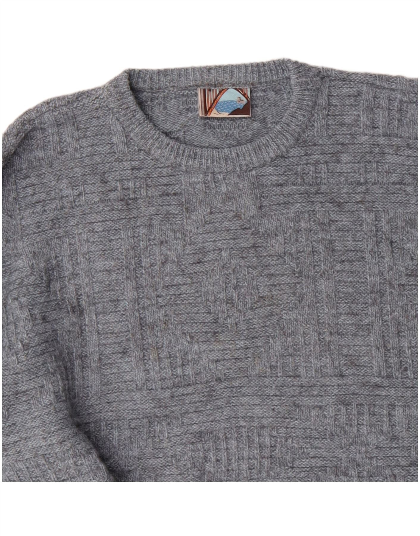 VINTAGE Pulover pentru bărbați cu gâtul turnat mare, gri acrilic