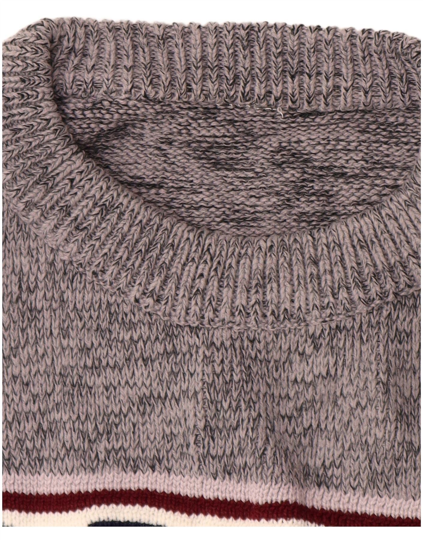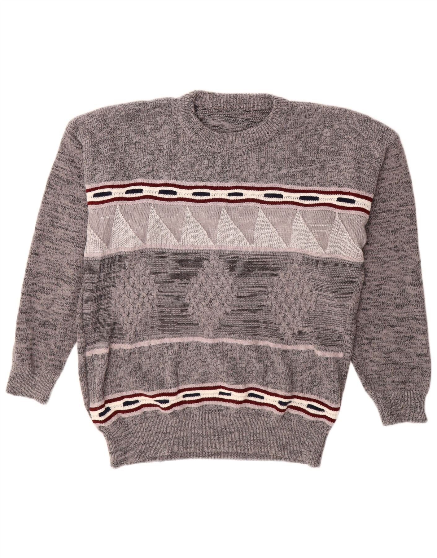 VINTAGE Pulover pentru bărbați cu gâtul turnat mare, gri geometric