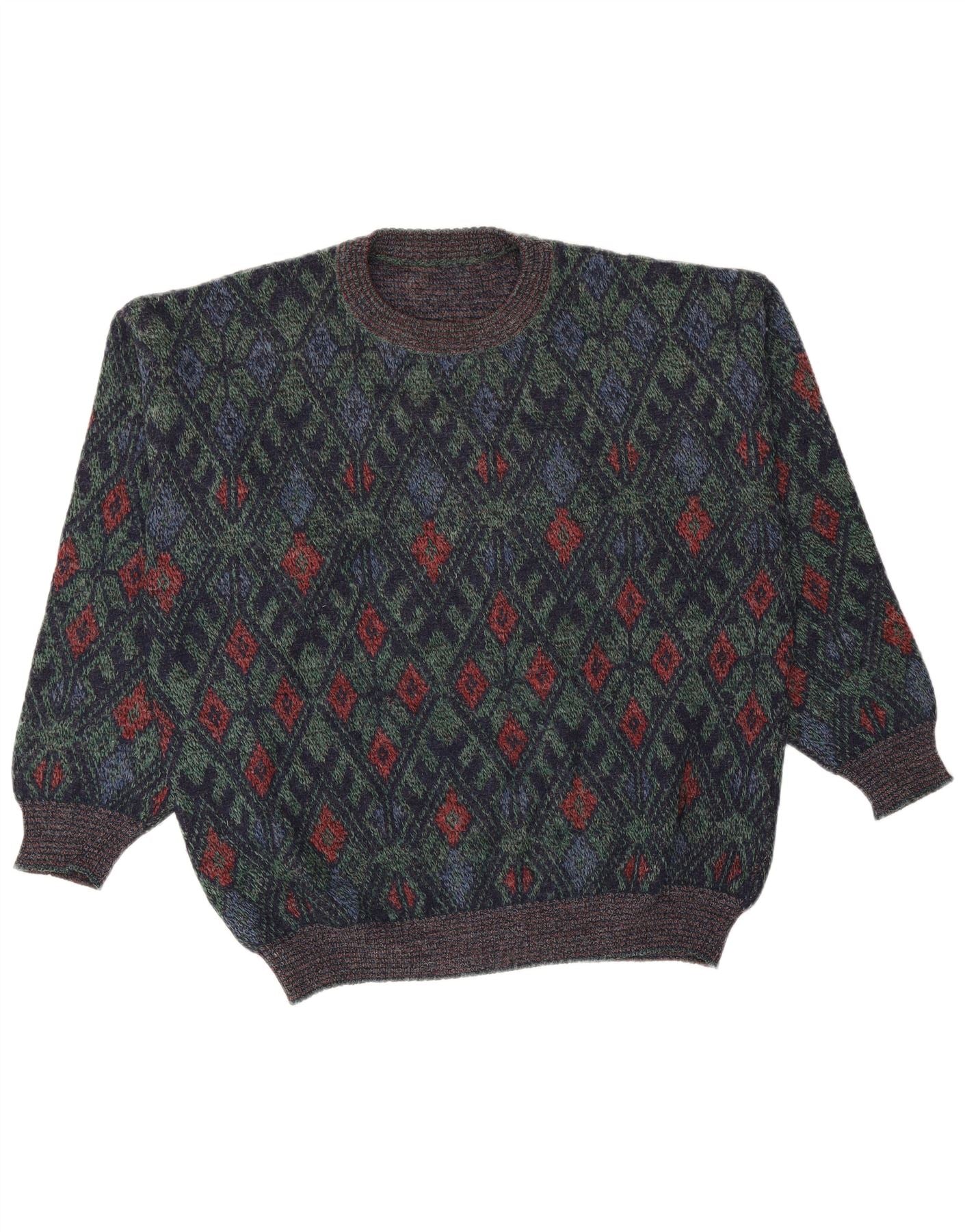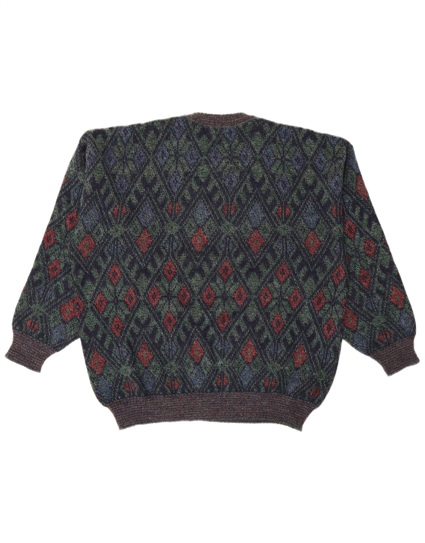 Pulover VINTAGE pentru bărbați cu gâtul turnat, mare, albastru marin Argyle/Diamond
