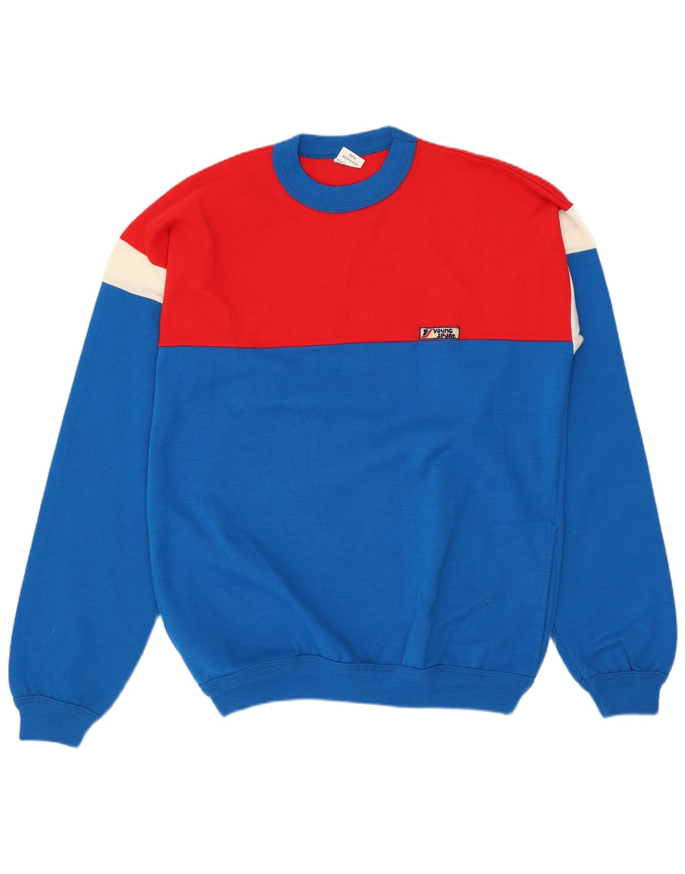 Pulover VINTAGE pentru bărbați cu decolteu rotund, albastru mediu, acrilic bloc de culoare
