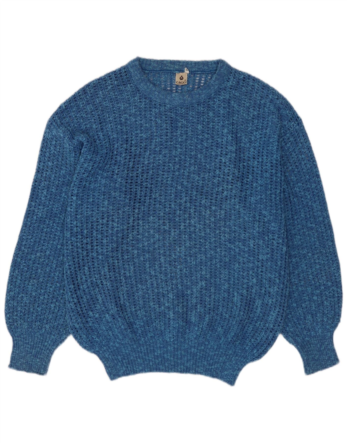 Pulover VINTAGE pentru bărbați cu gât roșu, bumbac cu pete albastru mediu