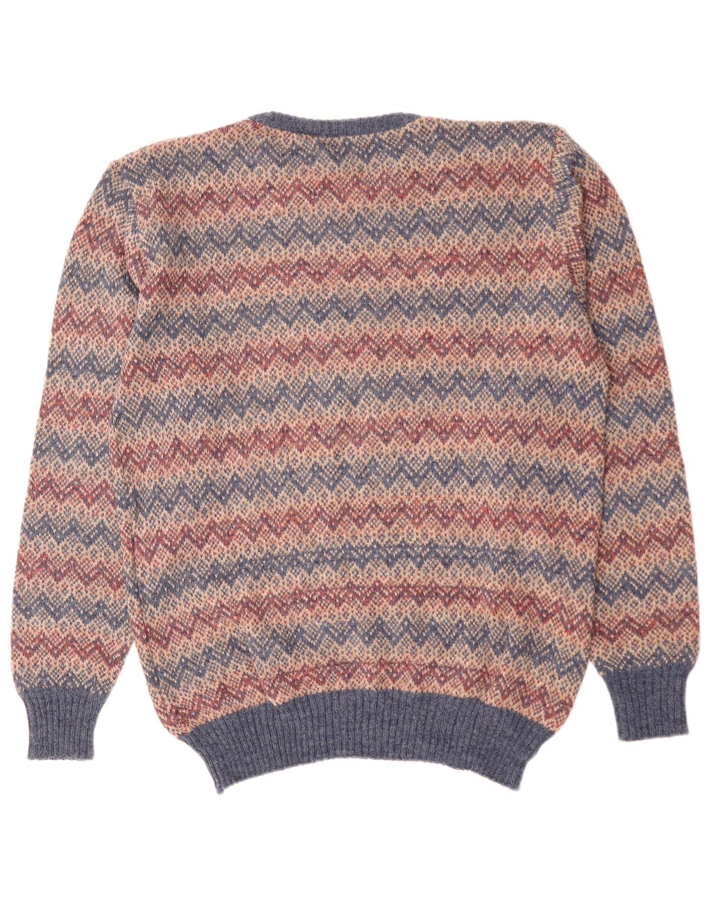 VINTAGE Mens Crew Neck Jumper Sweater Medium Brown Chevron Acrylic