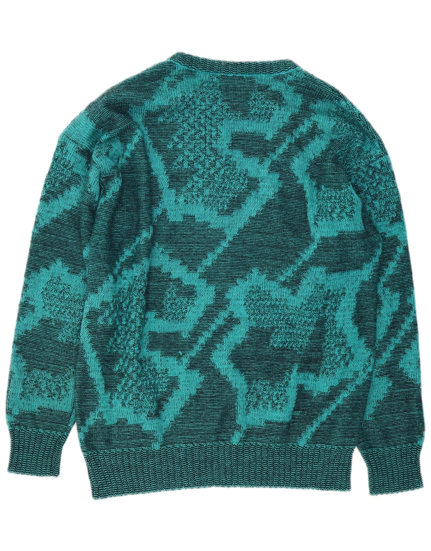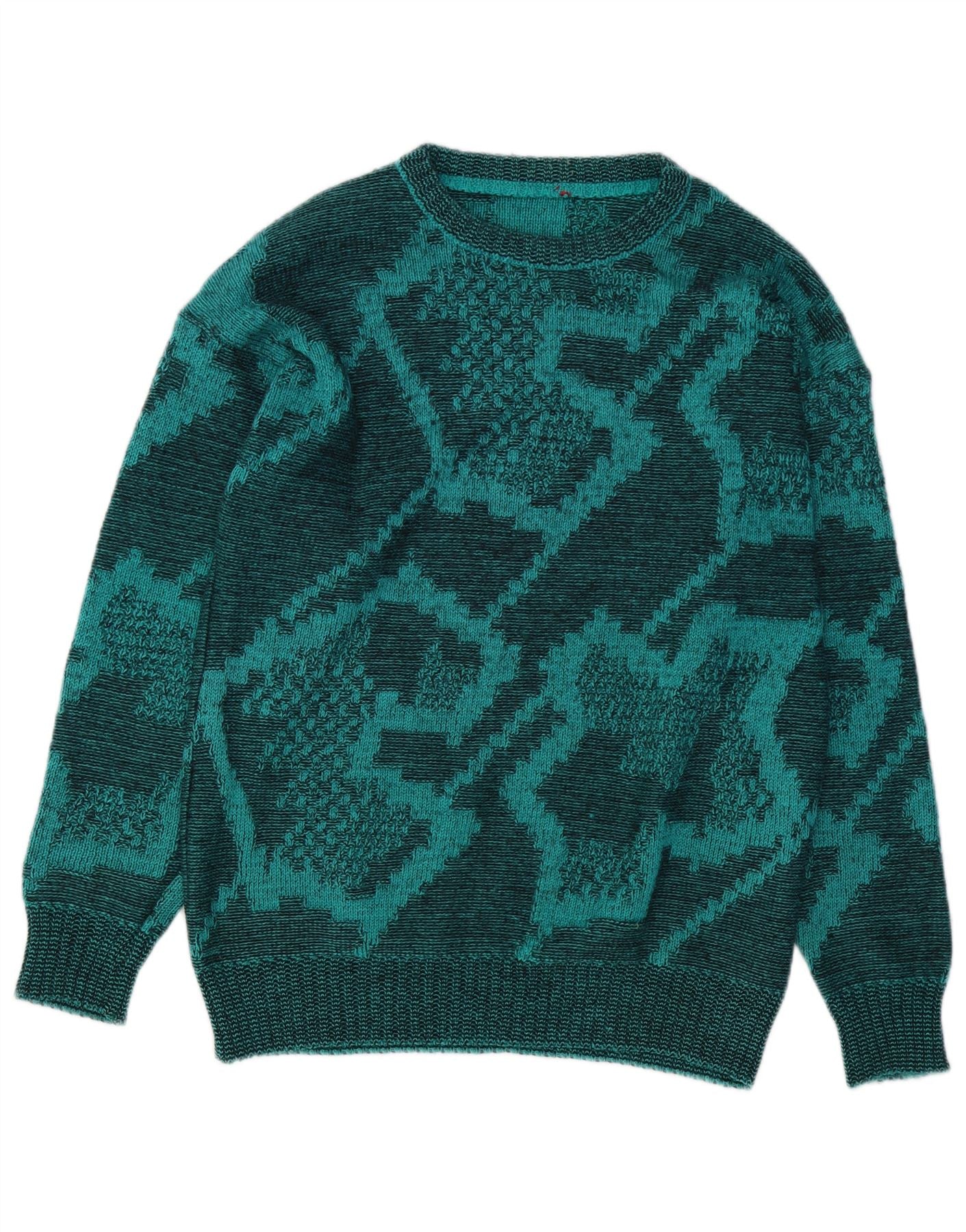 Pulover VINTAGE pentru bărbați cu gât crew, verde mediu geometric