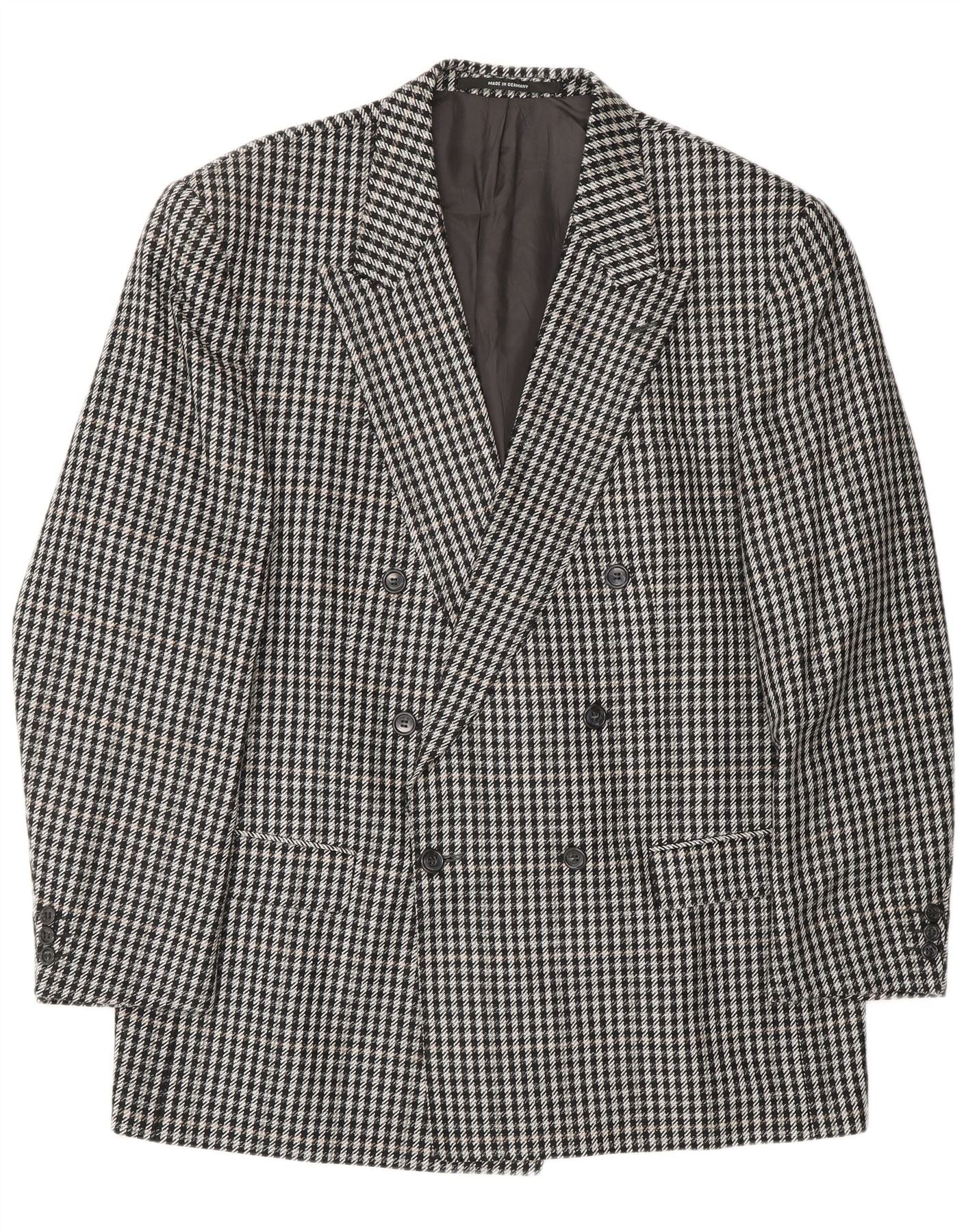 Jachetă pentru bărbați VINTAGE cu două piepturi EU 56 3XL Black Herringbone