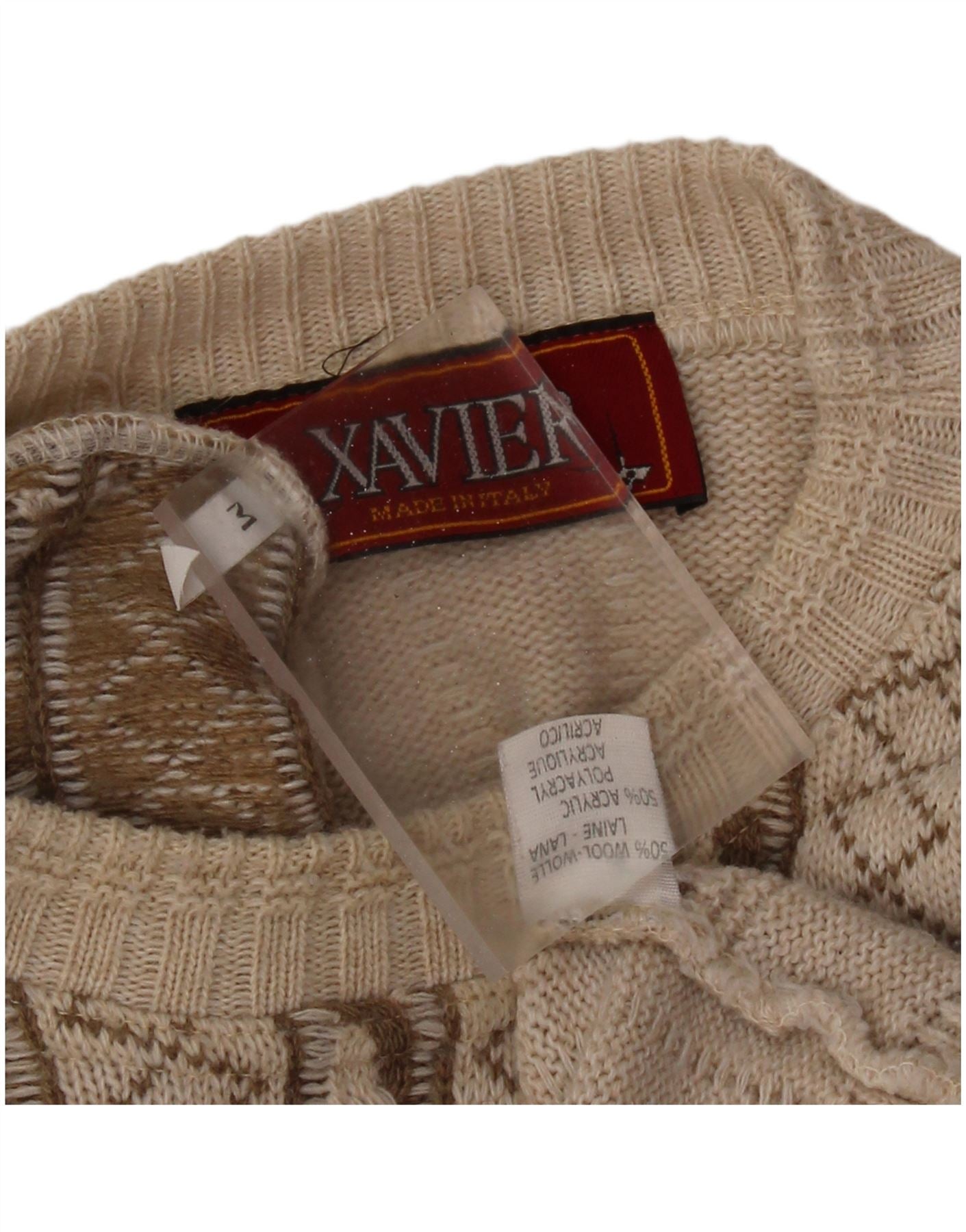 Pulover VINTAGE pentru bărbați cu grafică cu decolteu rotund, lână cu dungi, bej mediu