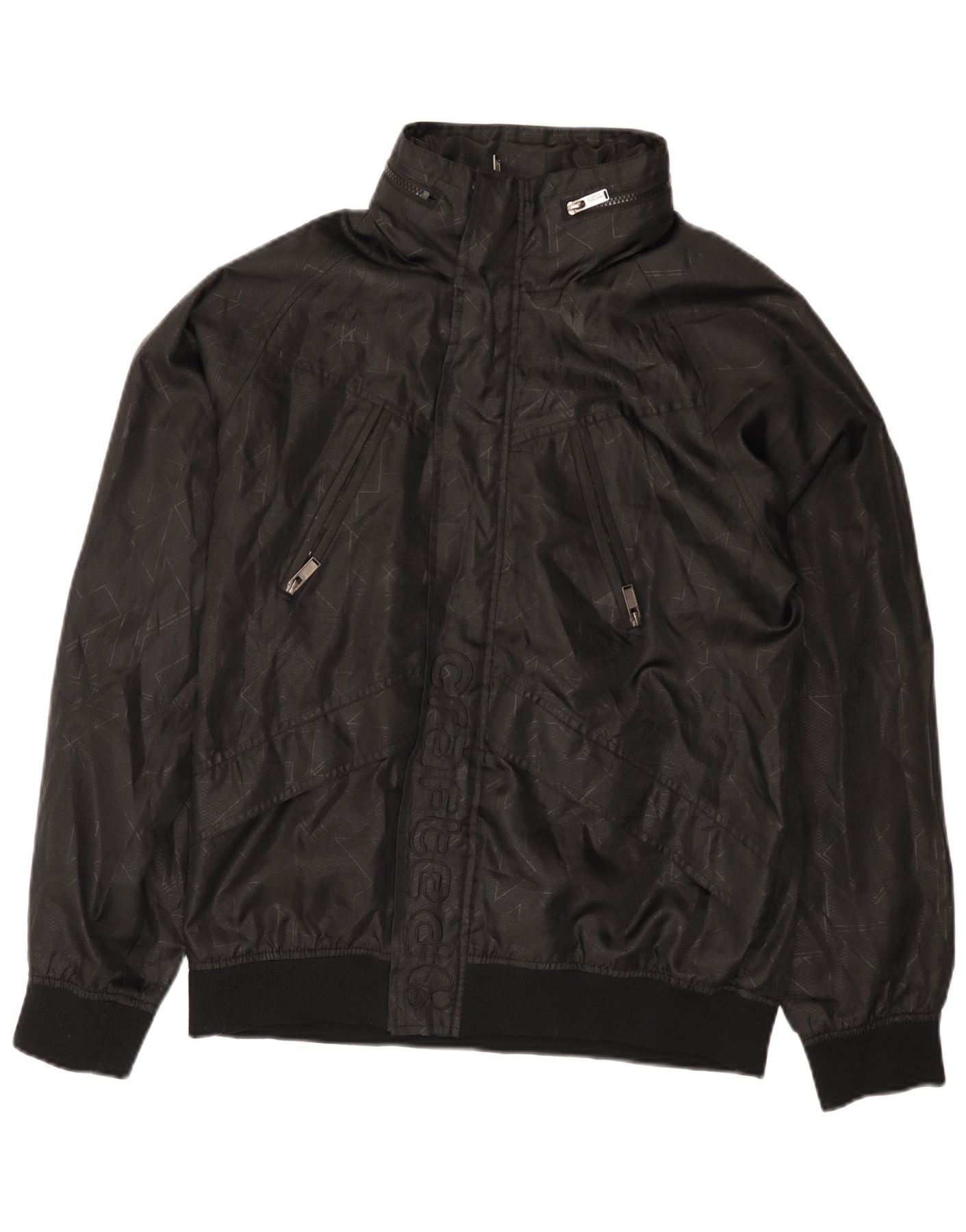 Jachetă vintage pentru bărbați cu glugă cu glugă UK 42 XL negru geometric
