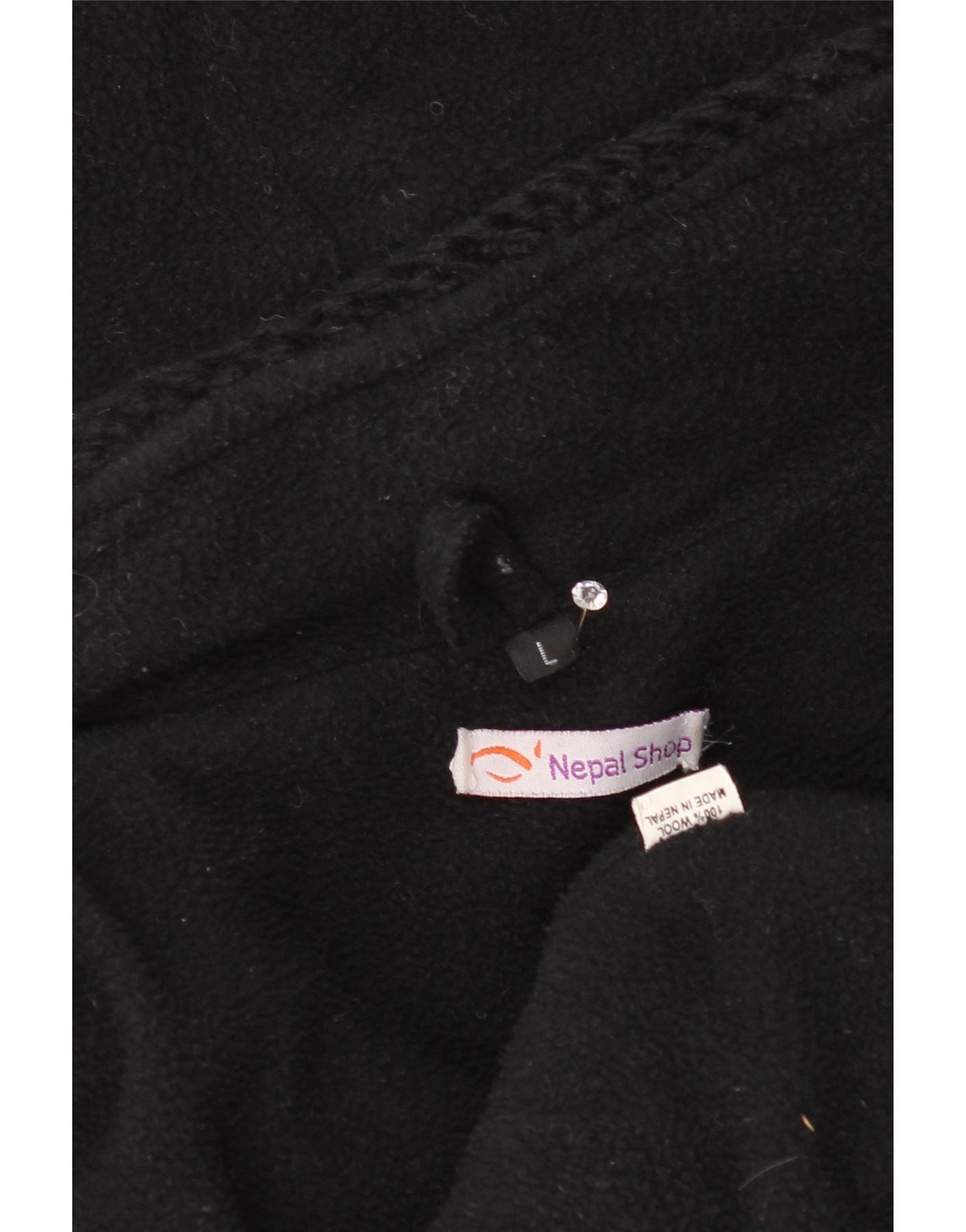 Cardigan cu glugă vintage pentru bărbați, lână Fair Isle, mare, neagră