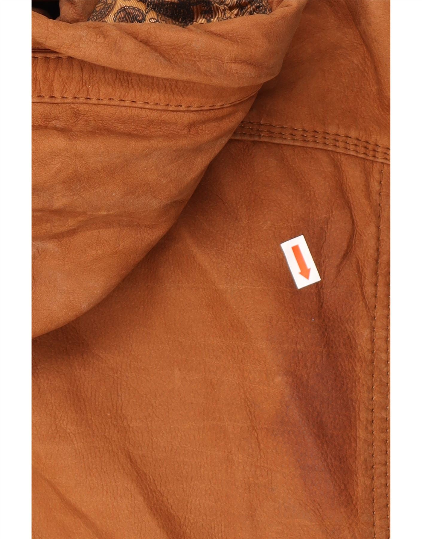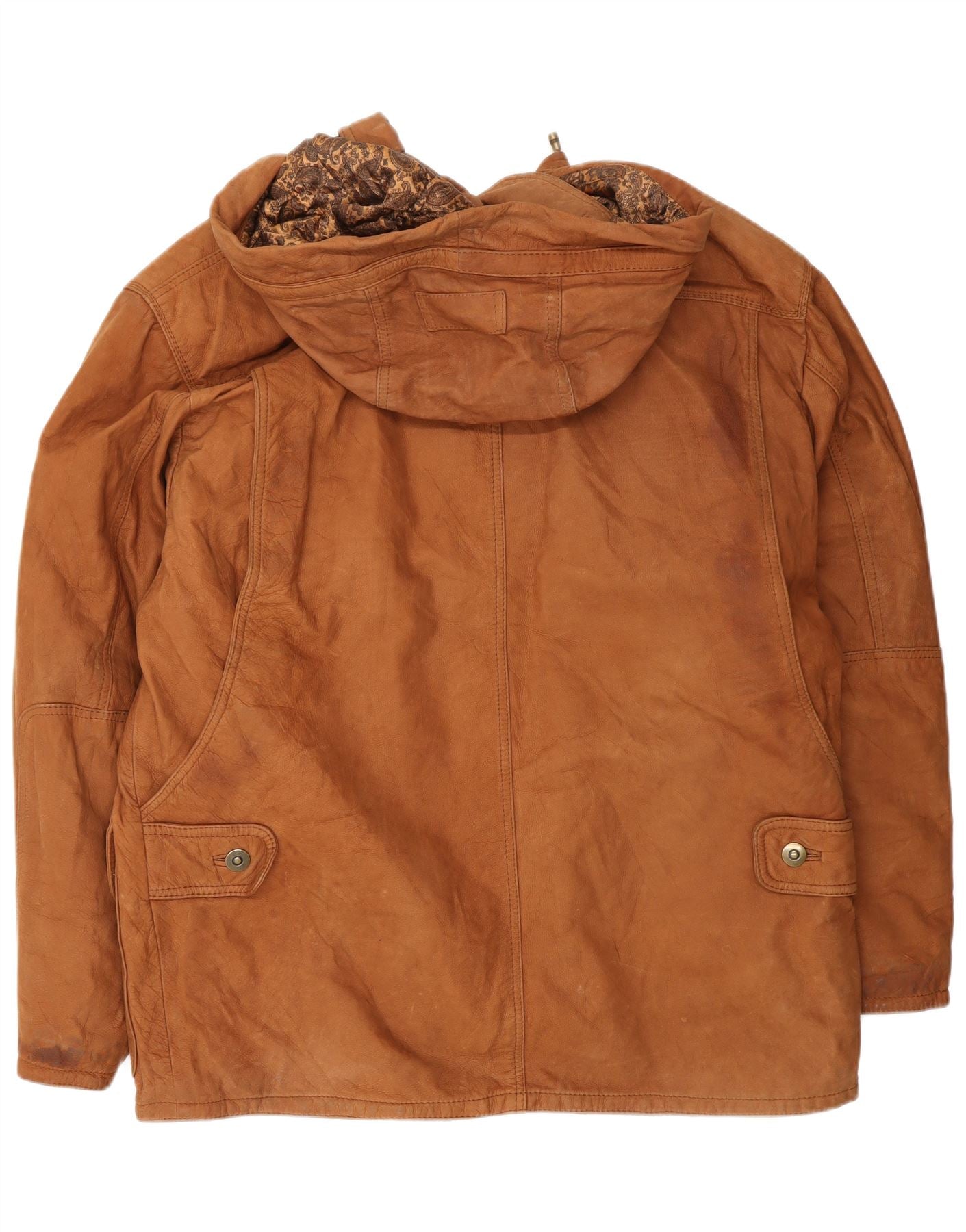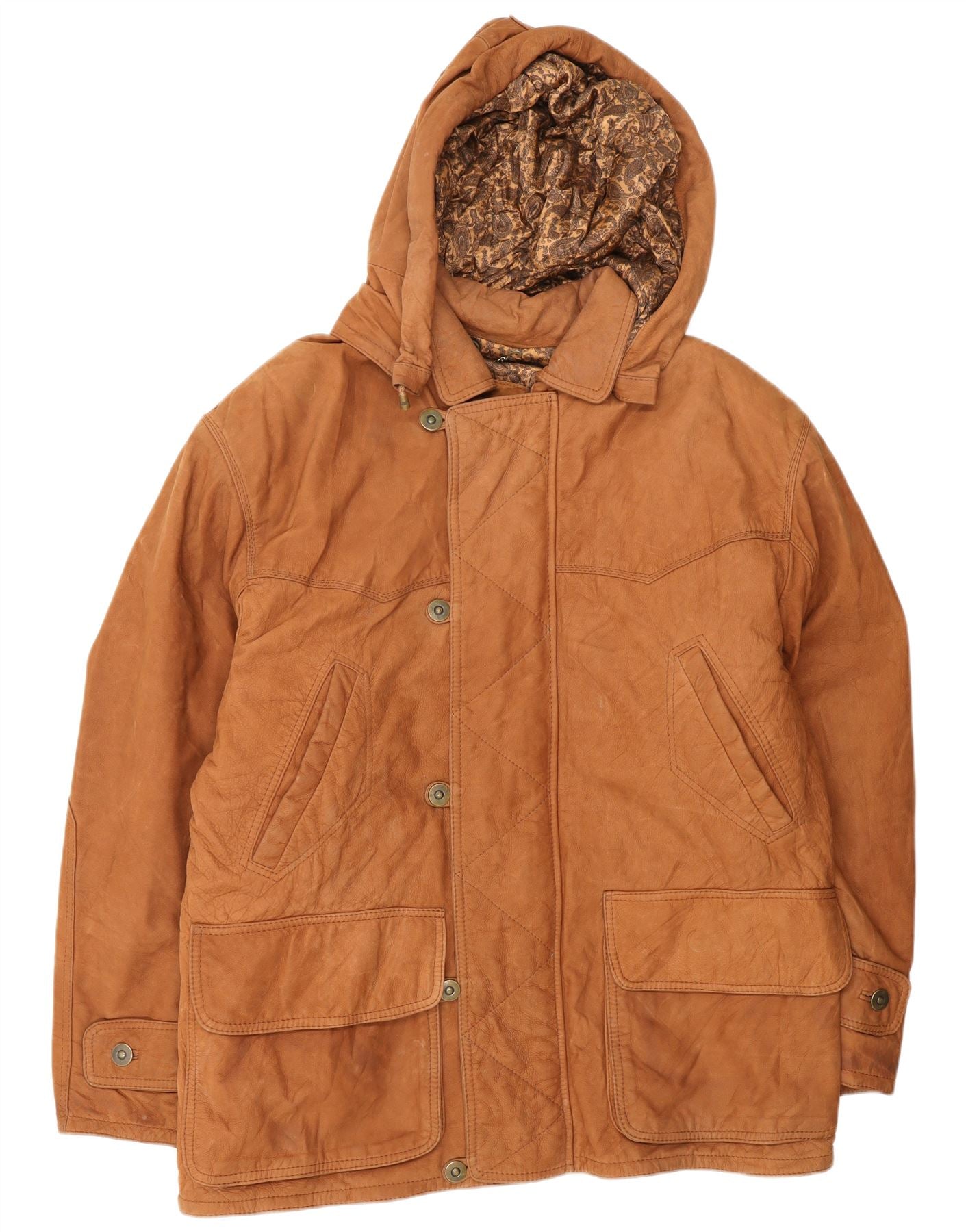 Jachetă din piele pentru bărbați VINTAGE cu glugă EU 54 2XL din piele maro