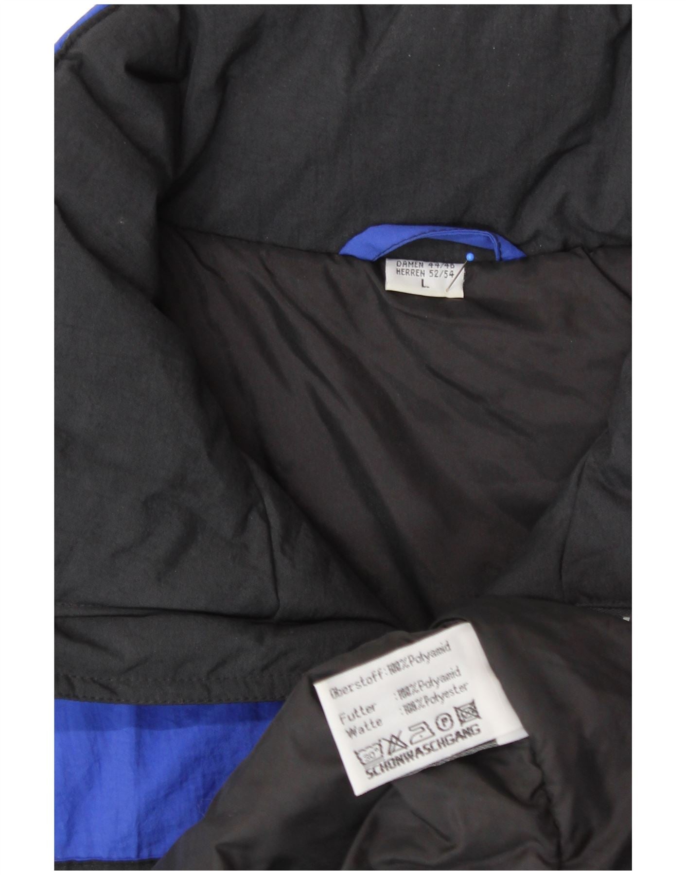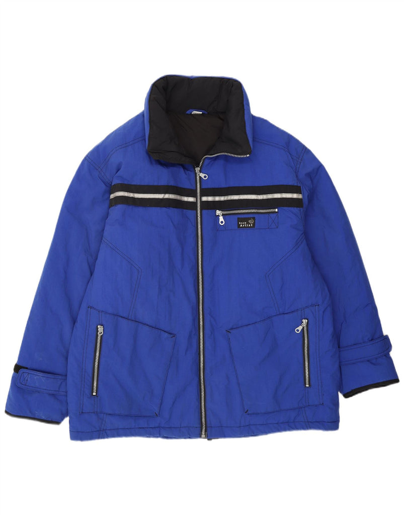 Jachetă de schi pentru bărbați VINTAGE cu glugă UK 40, mare, albastră, poliamidă