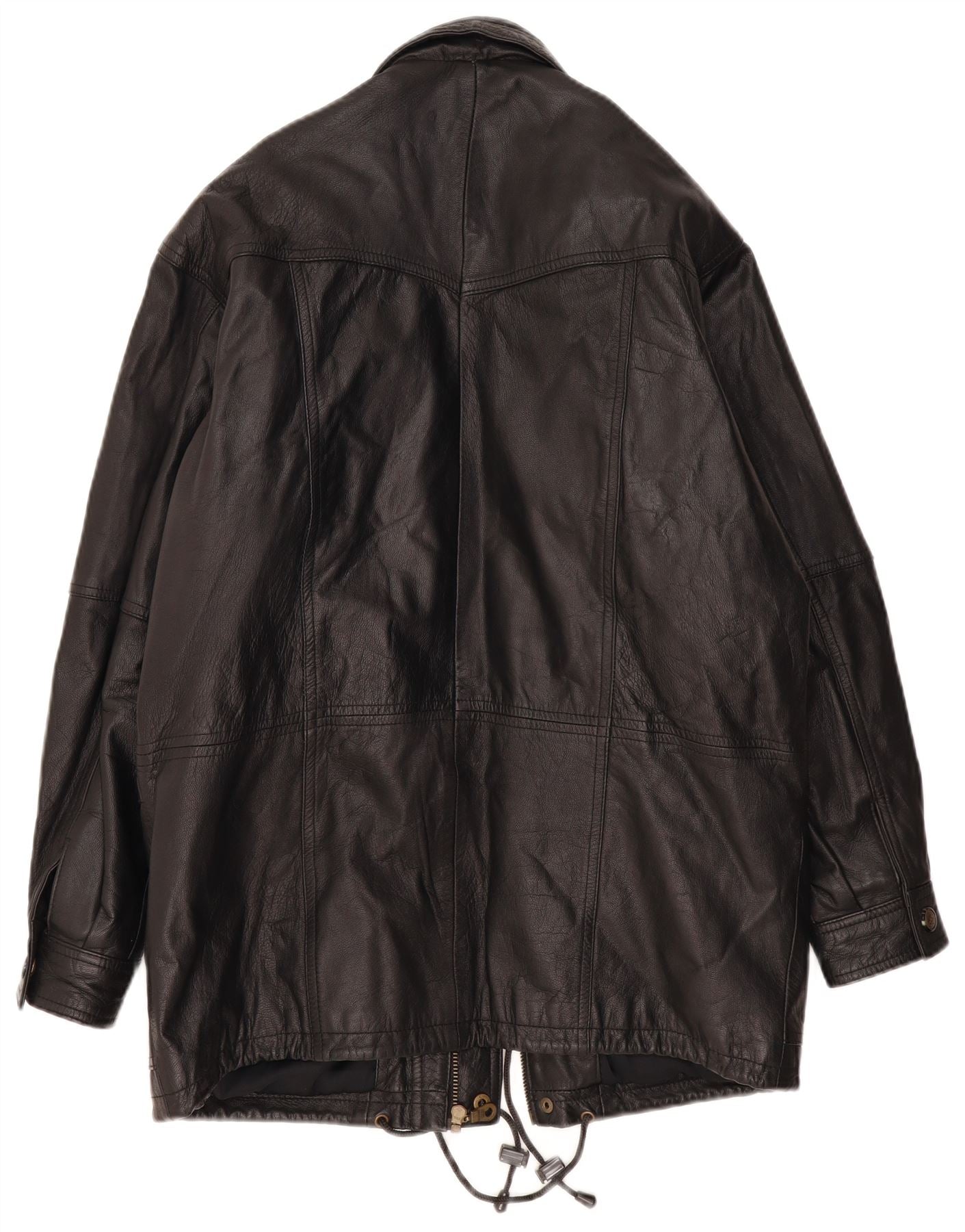 - Descriere AI: Această jachetă de piele Vintage pentru bărbați este confecționată din piele neagră bogată, oferind o textură clasică și durabilă. Are un decolteu cu guler și o închidere completă cu fermoar, ascunsă de o clapă de furtună cu nasturi. Mânecile lungi și o potrivire relaxată asigură o stratificare confortabilă. Mai multe buzunare utilitare și talie cu șnur reglabil adaugă detalii de inspirație militară. Interiorul căptușit oferă un plus de căldură și confort.