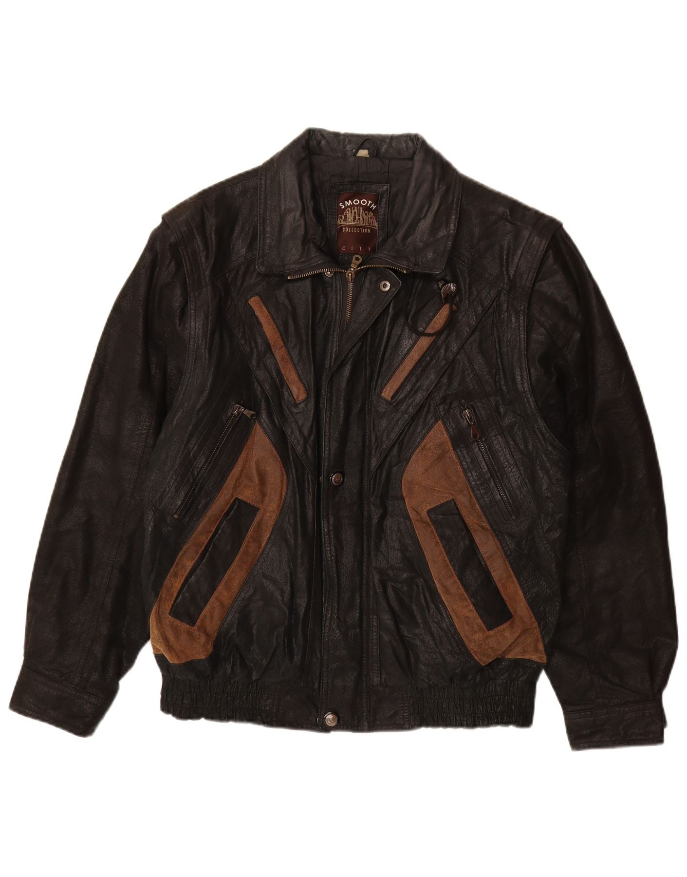Jachetă de piele pentru bărbați VINTAGE UK 40, mare, neagră, color block