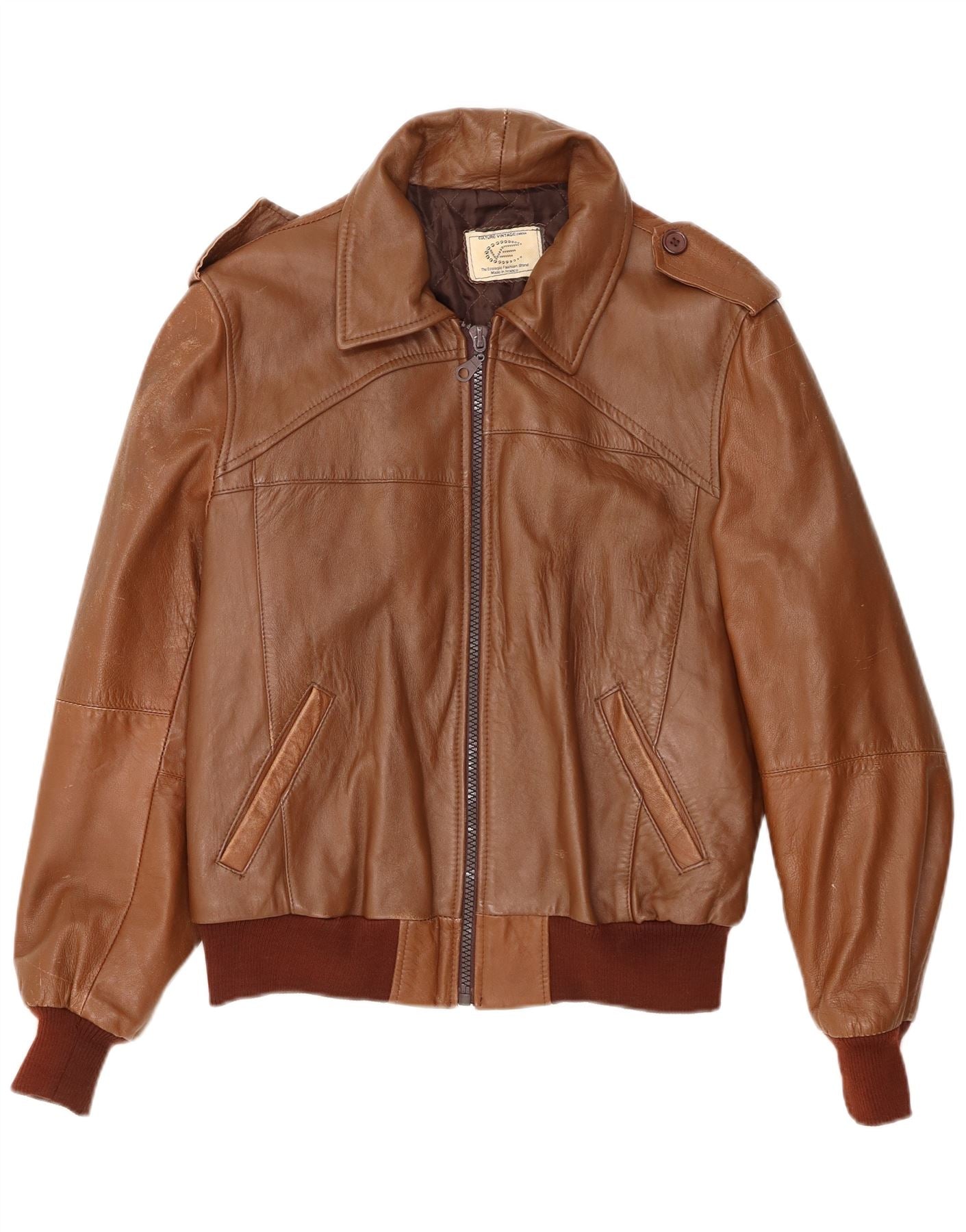 Home > Jachete de piele de epocă > Jachete din piele vintage maro > Jachetă militară din piele pentru bărbați VINTAGE UK 40, mare, maro, din piele