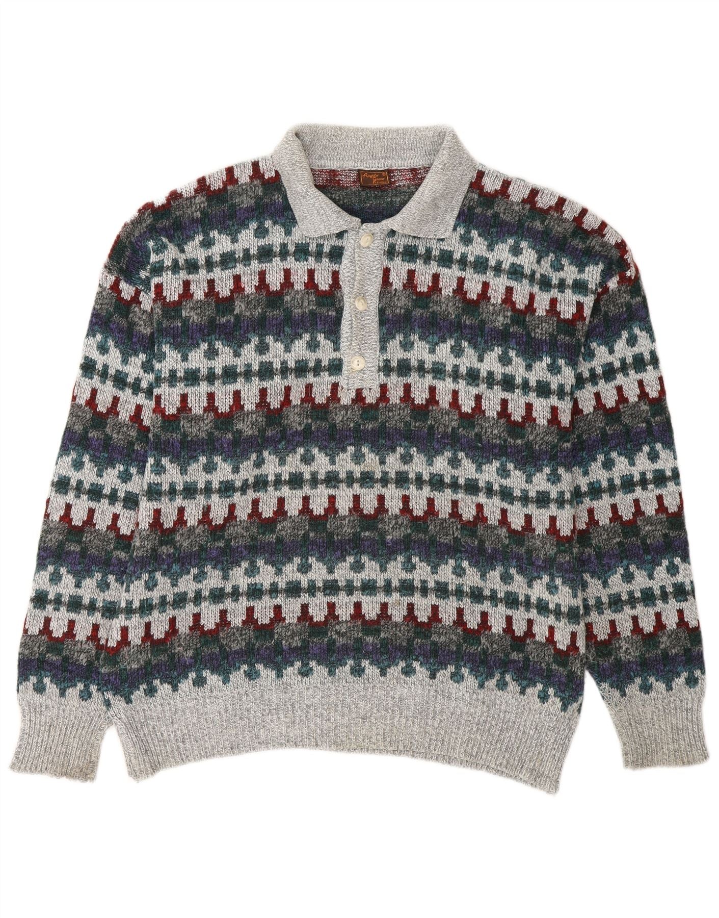 VINTAGE Pulover cu gât polo pentru bărbați IT 48 Medium Multicolor Fair Isle