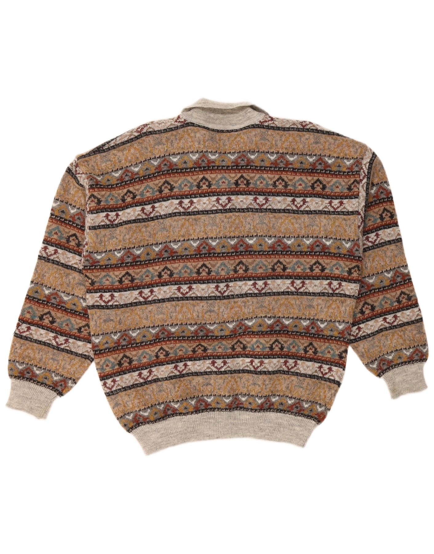 VINTAGE Pulover cu gât polo pentru bărbați IT 52 Maro mare Fair Isle Acrilic