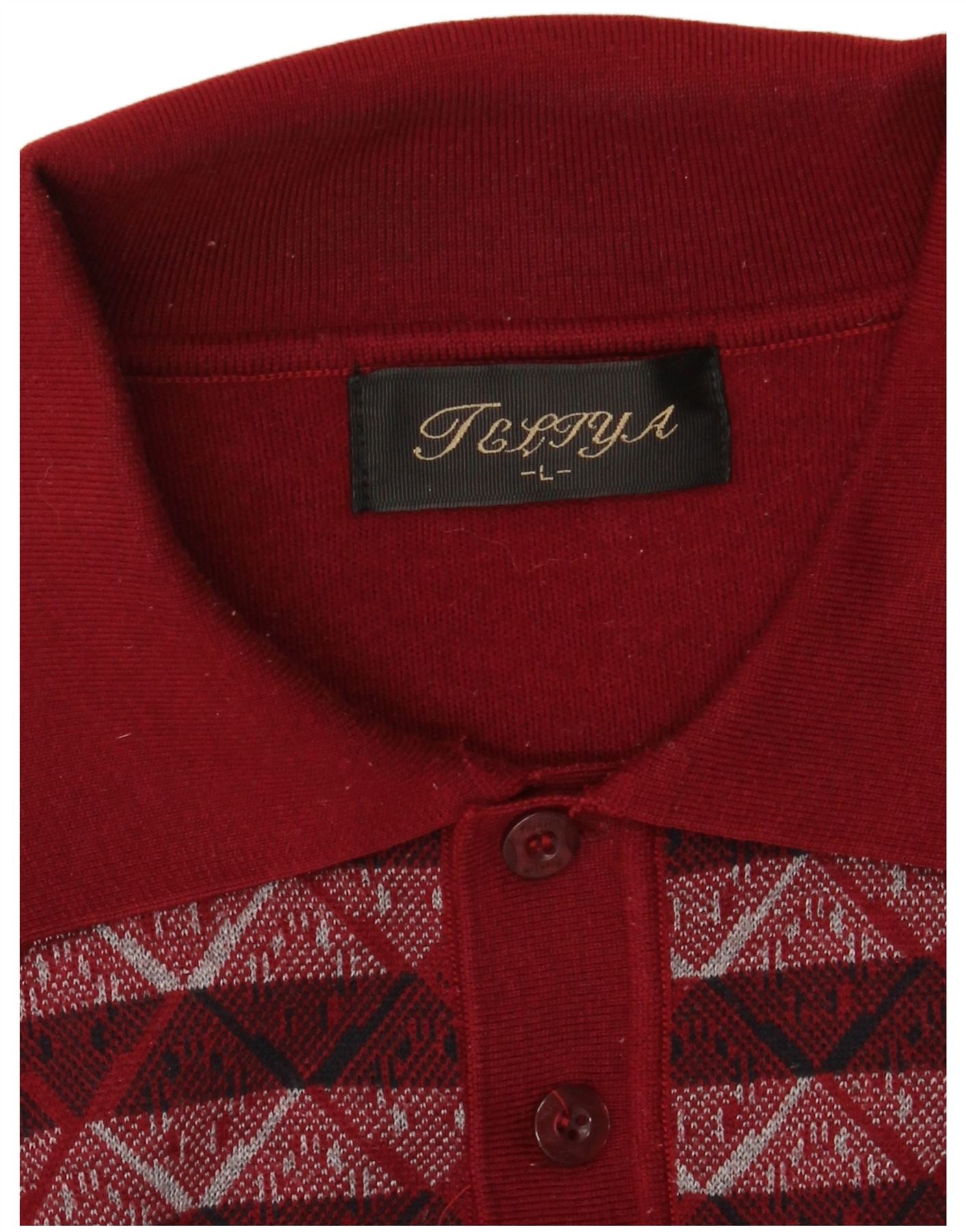 VINTAGE Pulover cu gât polo pentru bărbați, mare, burgundă, geometric
