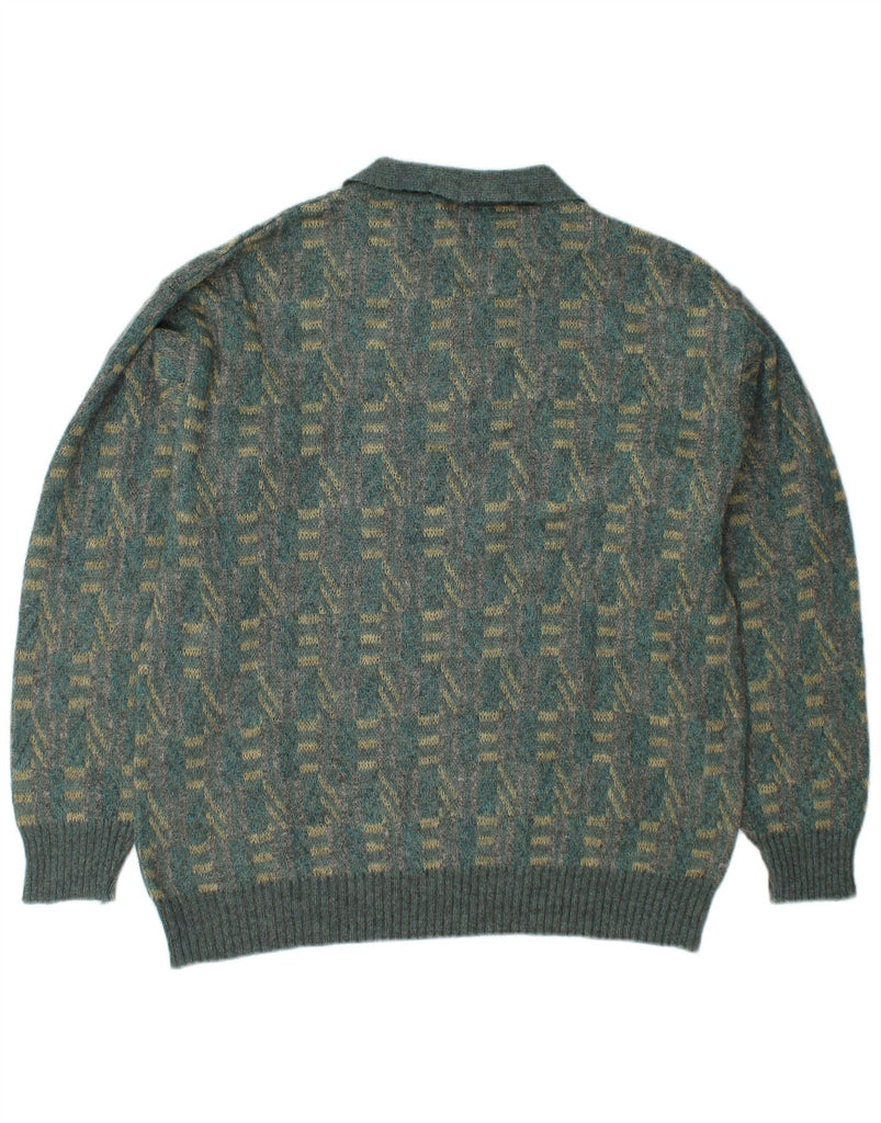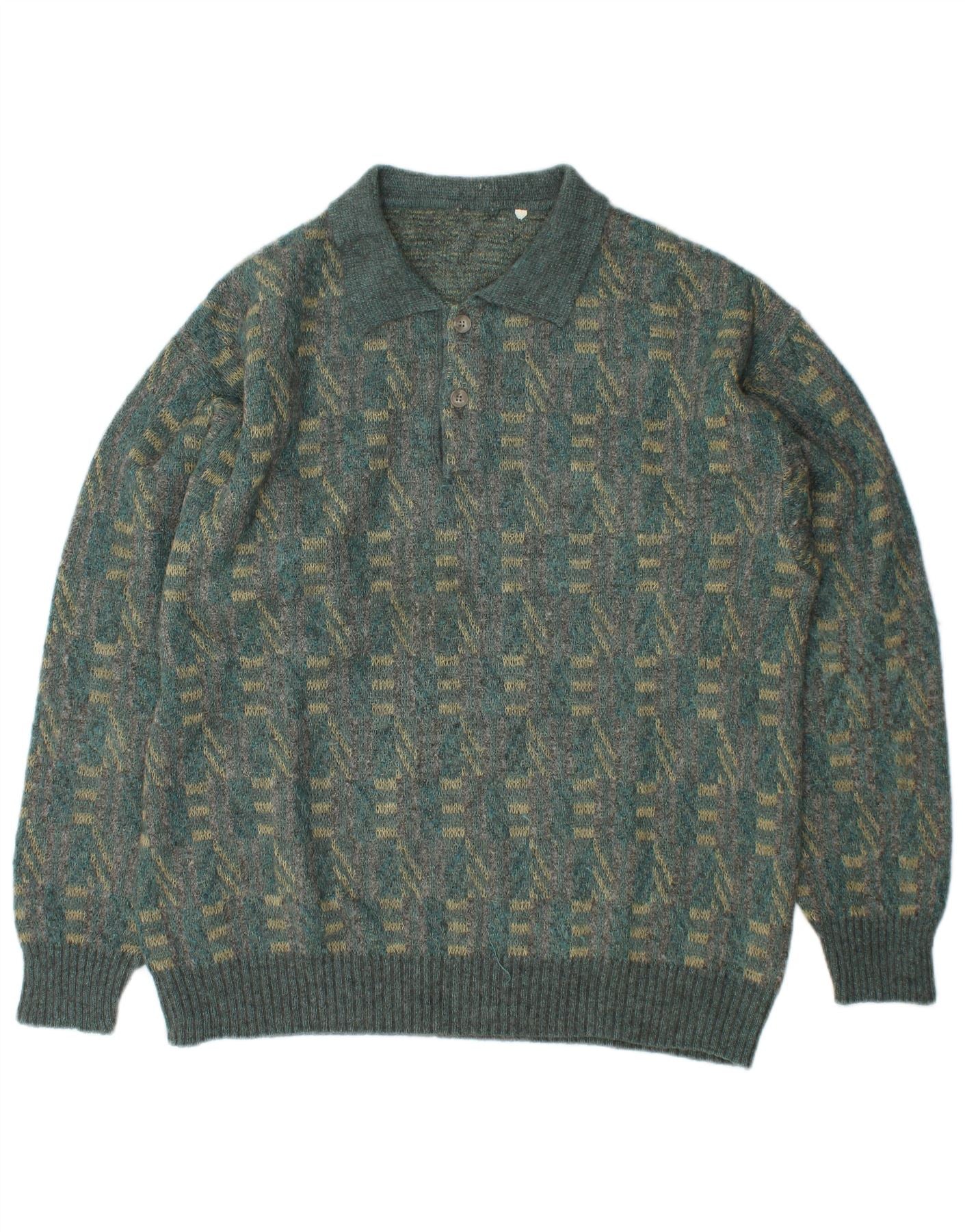 VINTAGE Pulover cu gât polo pentru bărbați Mohair mare cu dungi verzi