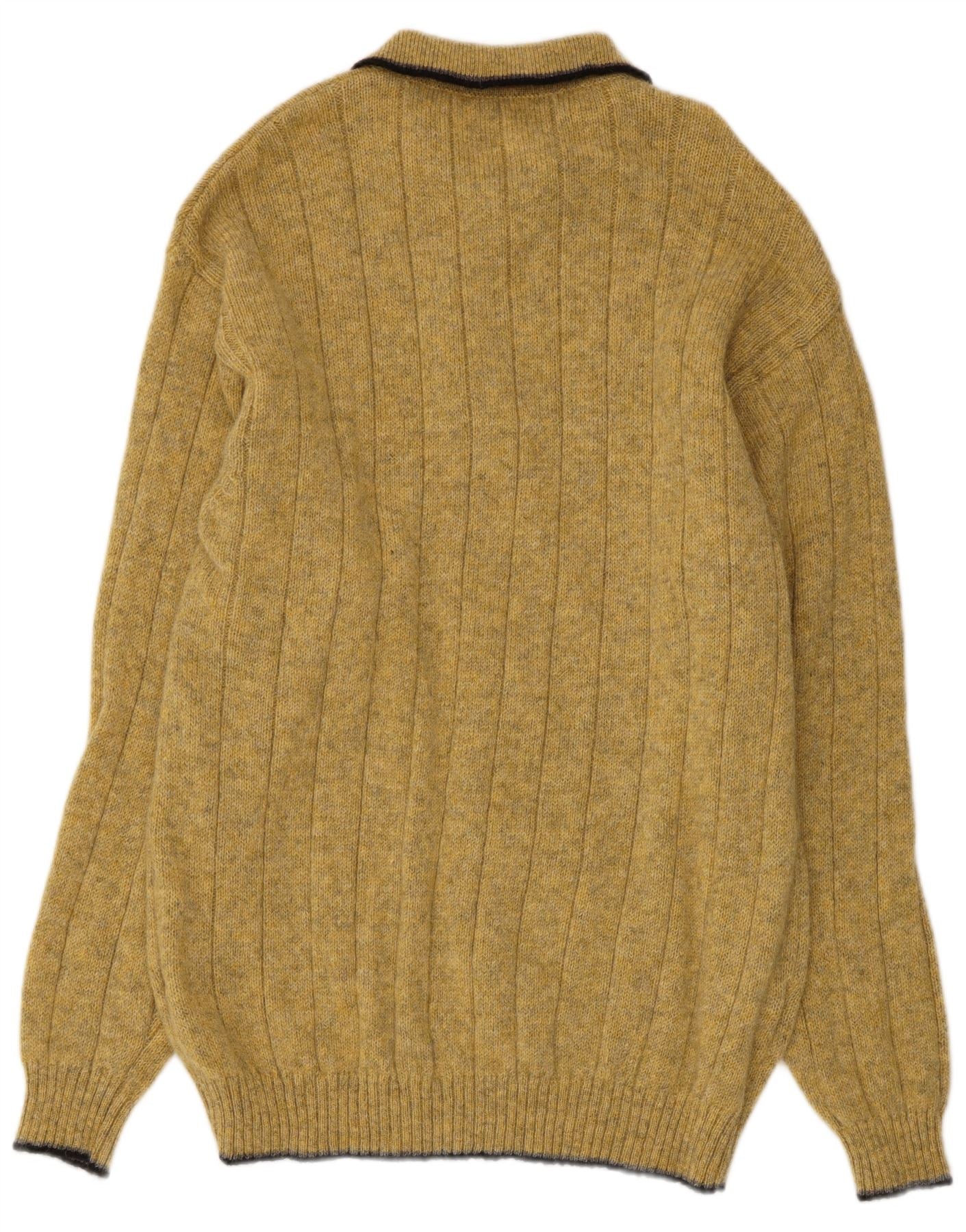 Pulover vintage pentru bărbați cu gât polo, lână galbenă medie