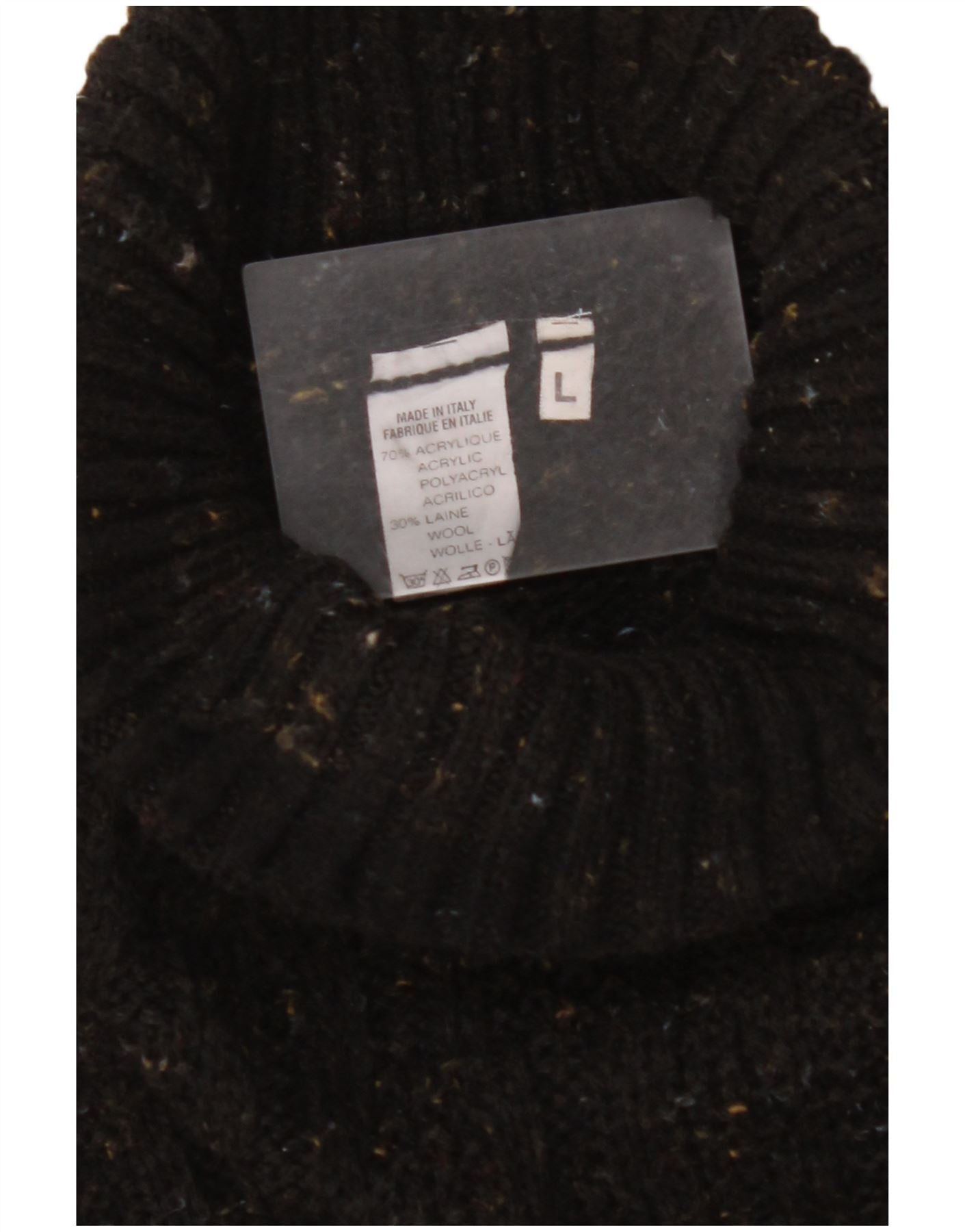 VINTAGE Pulover cu gât rulat pentru bărbați, mare, acrilic cu pete negru