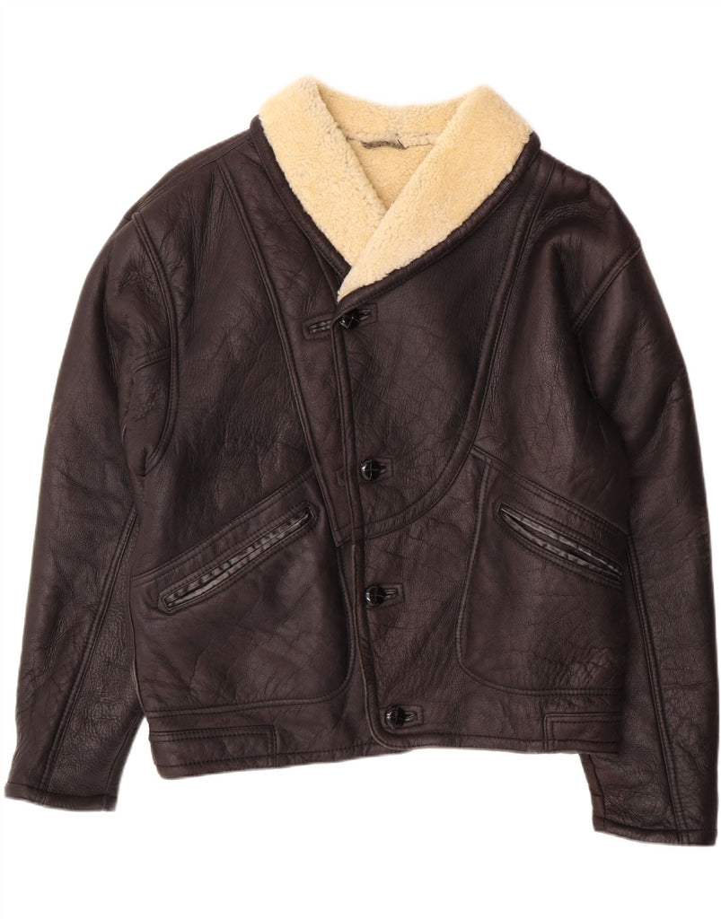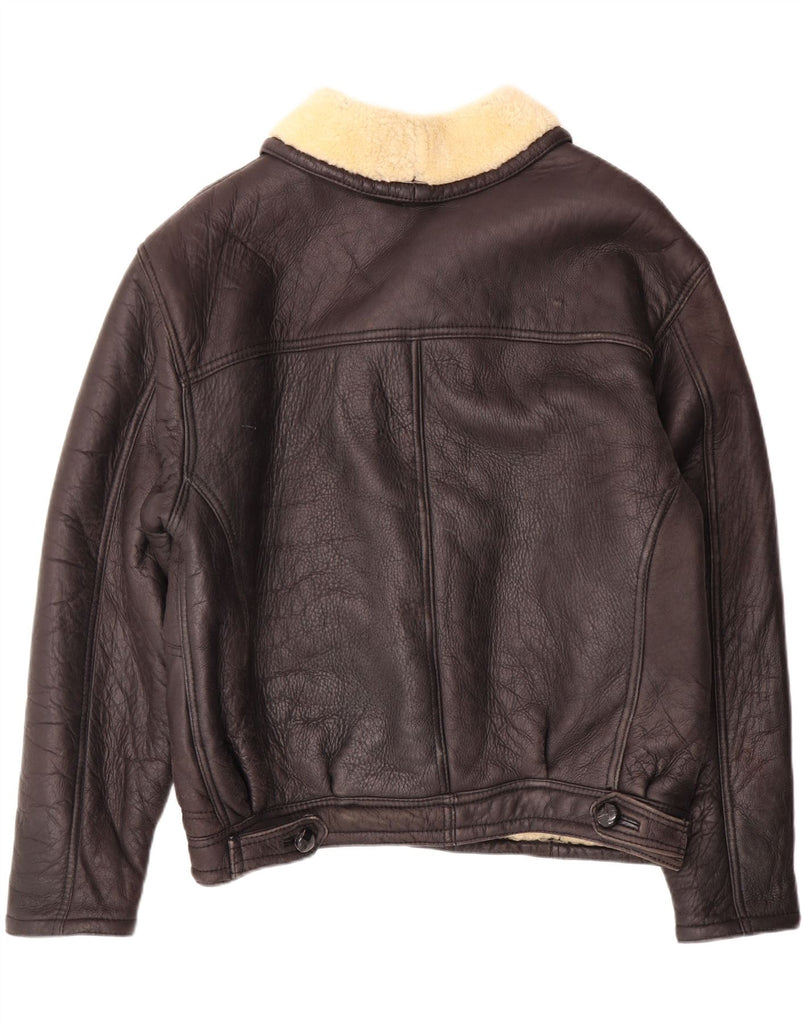 VINTAGE Mens Shearling Jacket IT 50 Large Brown Leather