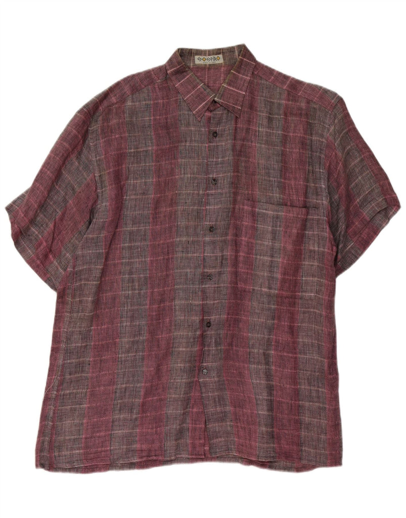 Cămașă de flanel cu mânecă scurtă pentru bărbați VINTAGE, mov mediu, carouri