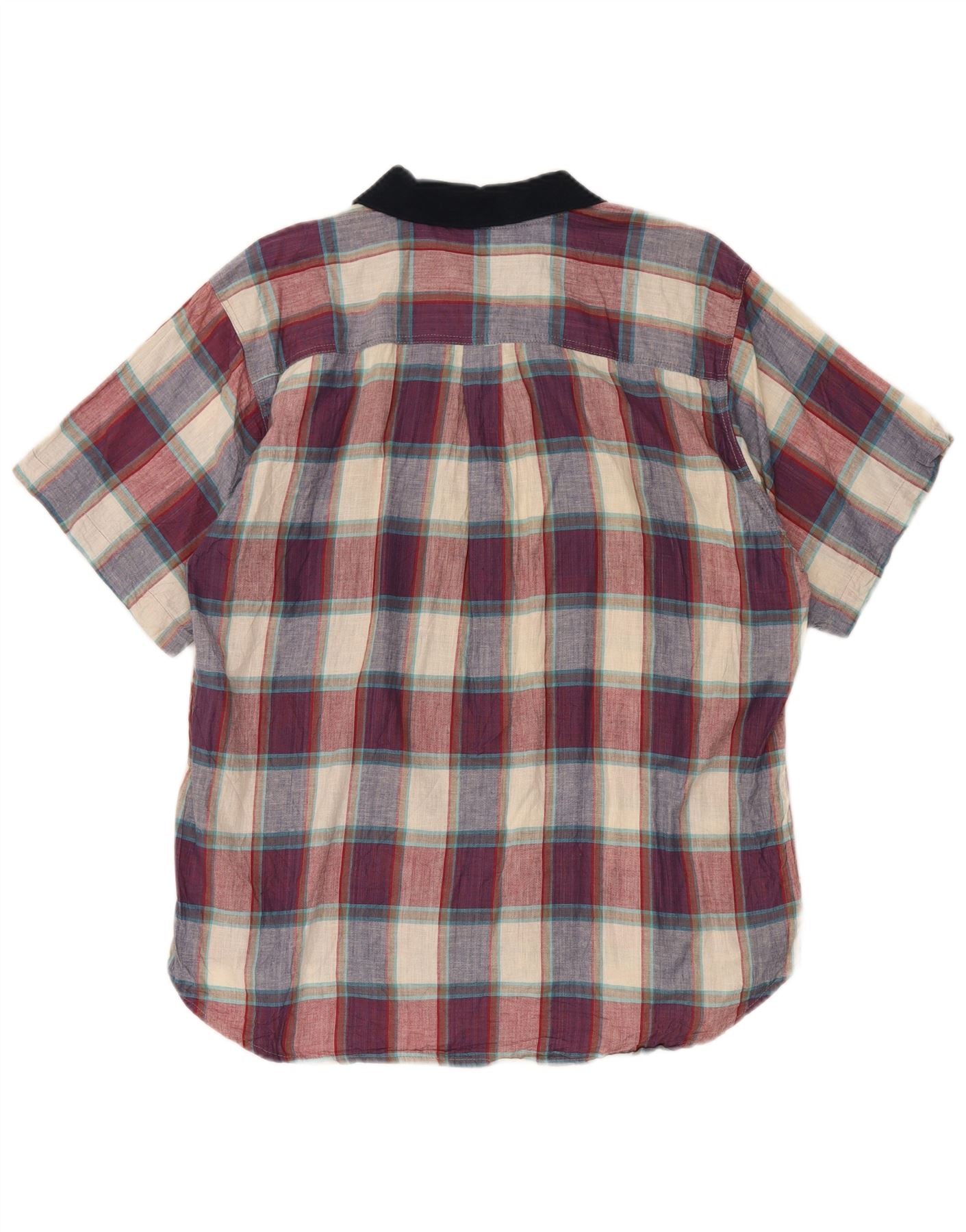 - Descriere AI: Această cămașă Vintage pentru bărbați este confecționată din țesătură ușoară 100% bumbac. Are un model în carouri multicolore vibrante în roșu, albastru și alb. Decolteul cu guler este de un negru contrastant. Mânecile scurte și o potrivire obișnuită asigură confort. Are nasturi in fata si doua buzunare la piept, unul cu logo brodat. Acest stil retro oferă un aspect casual, dar rafinat.