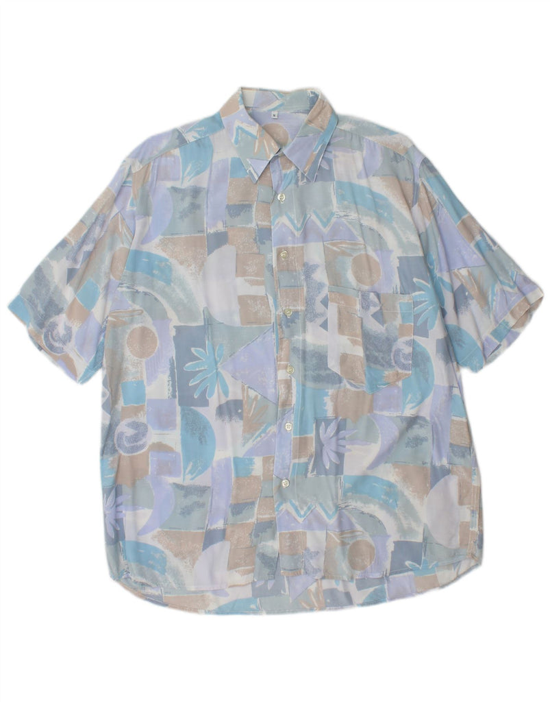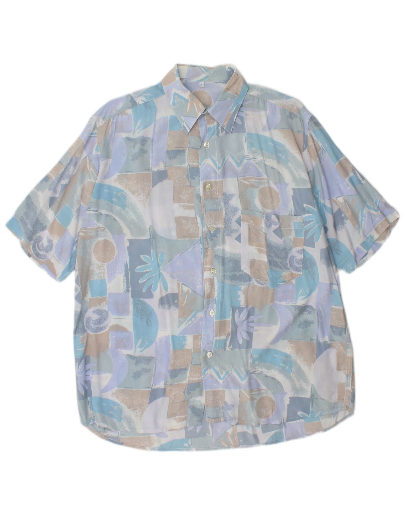 Cămașă cu mânecă scurtă pentru bărbați VINTAGE Albastru mediu geometric