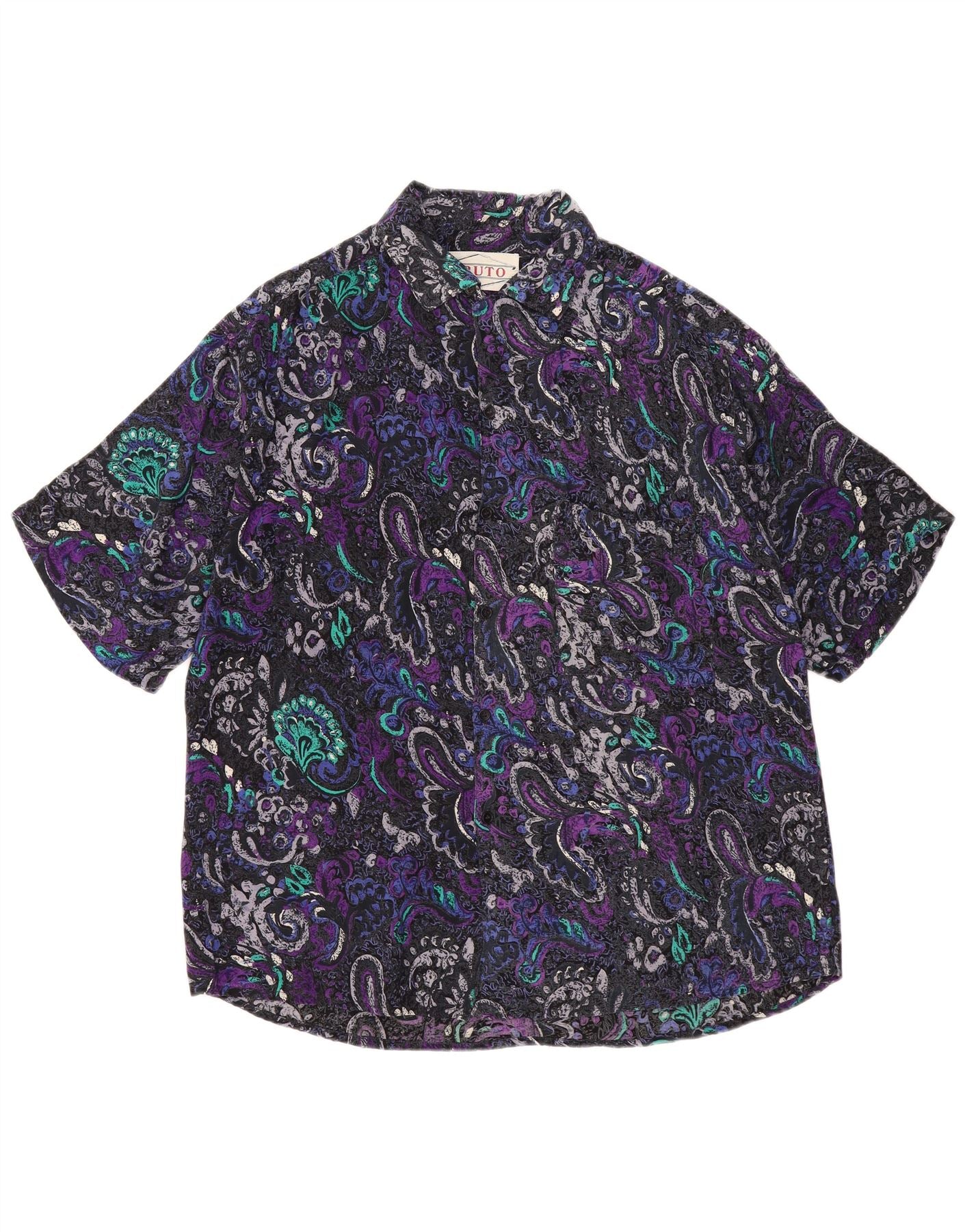 VINTAGE Mens Short Sleeve Shirt Medium Multicoloured Paisley Viscose