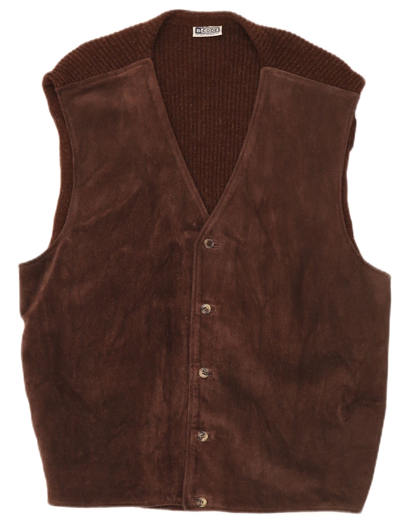 VINTAGE Gilet de piele intoarsa pentru barbati UK 42 XL Maro piele