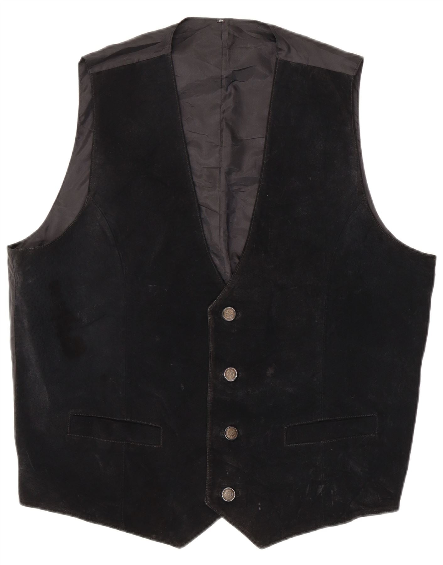Vestă vintage pentru bărbați din piele intoarsa IT 54 XL din piele neagra