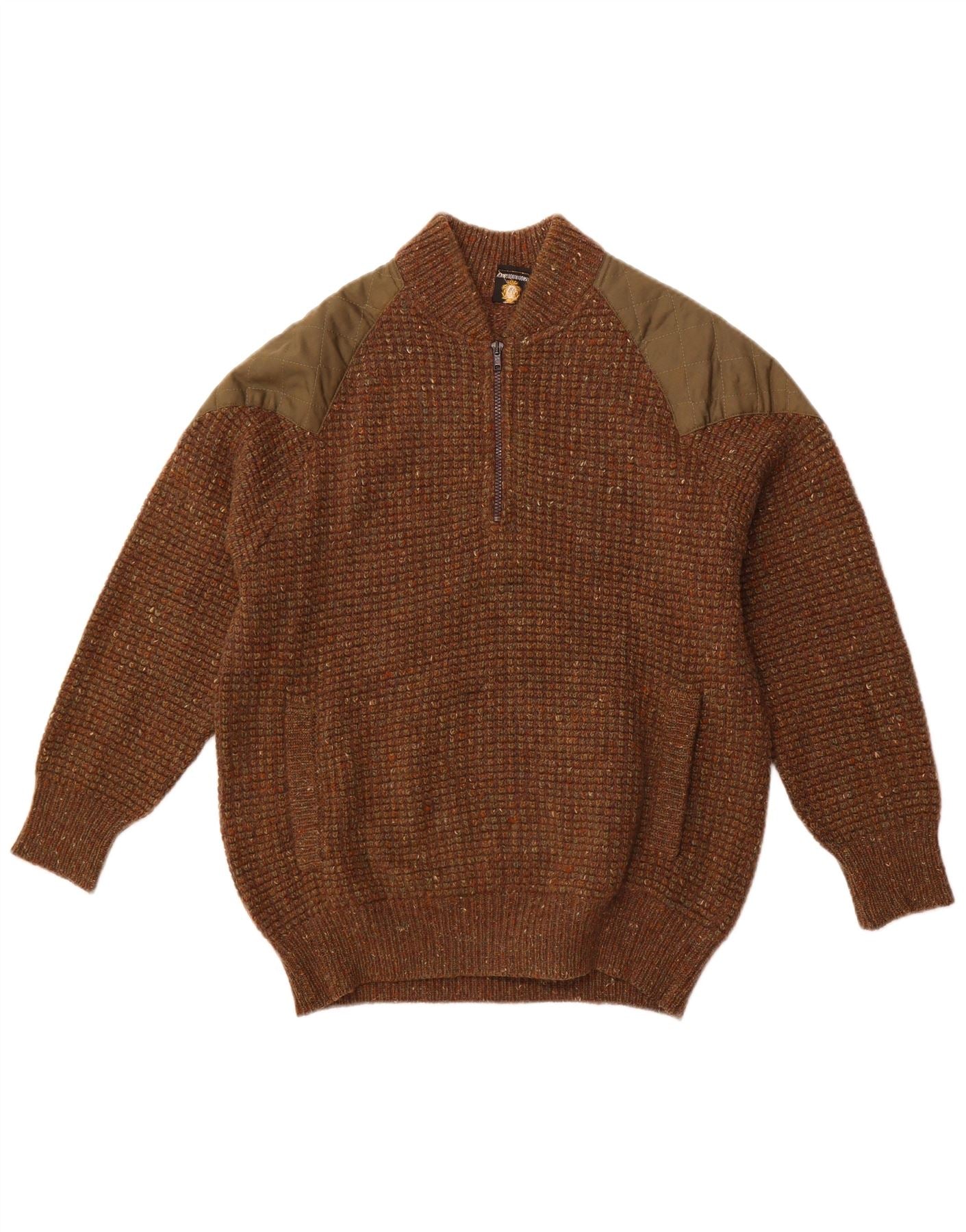 Pulover VINTAGE pentru bărbați cu gât țestoasă IT 52 Lână mare maro pete