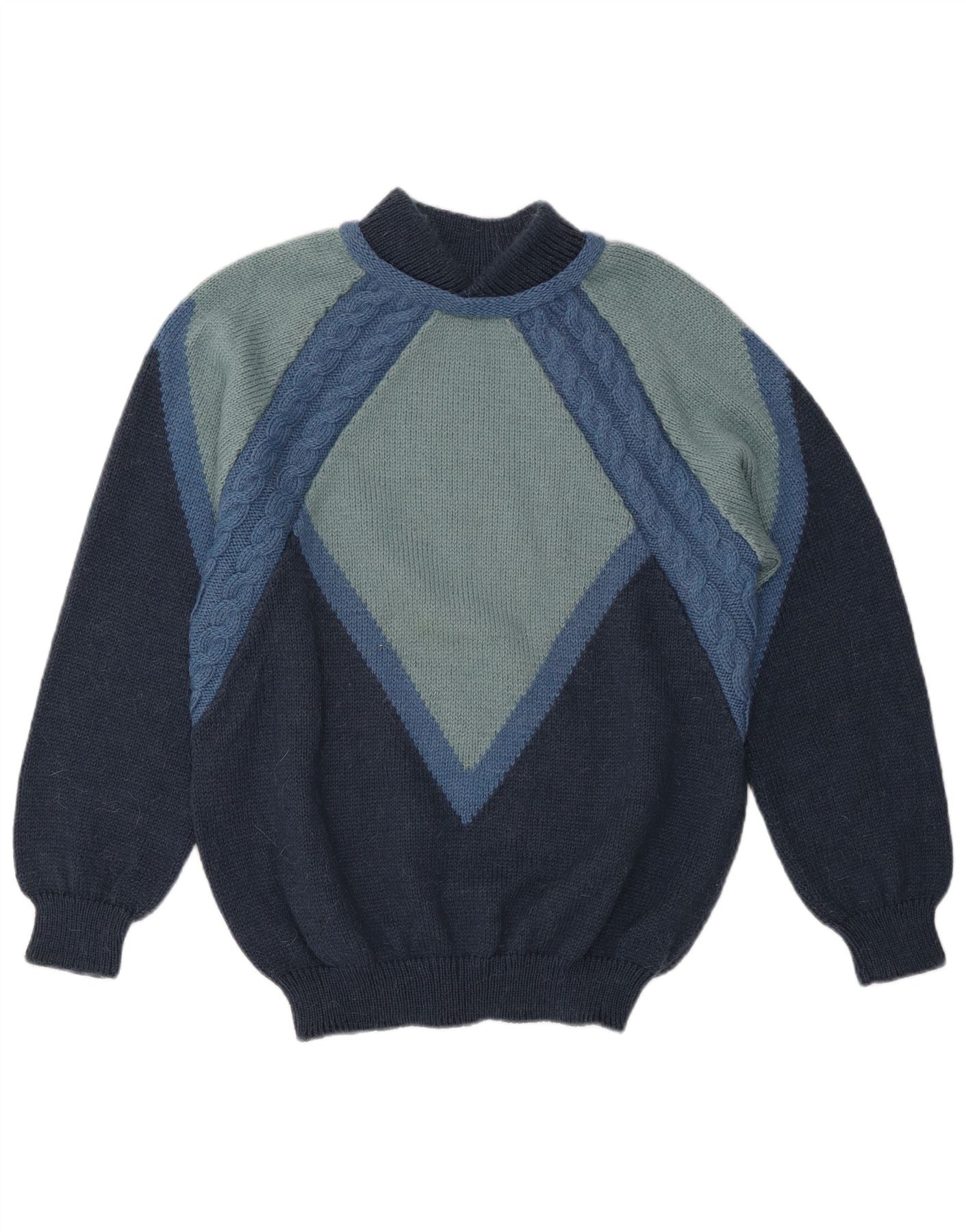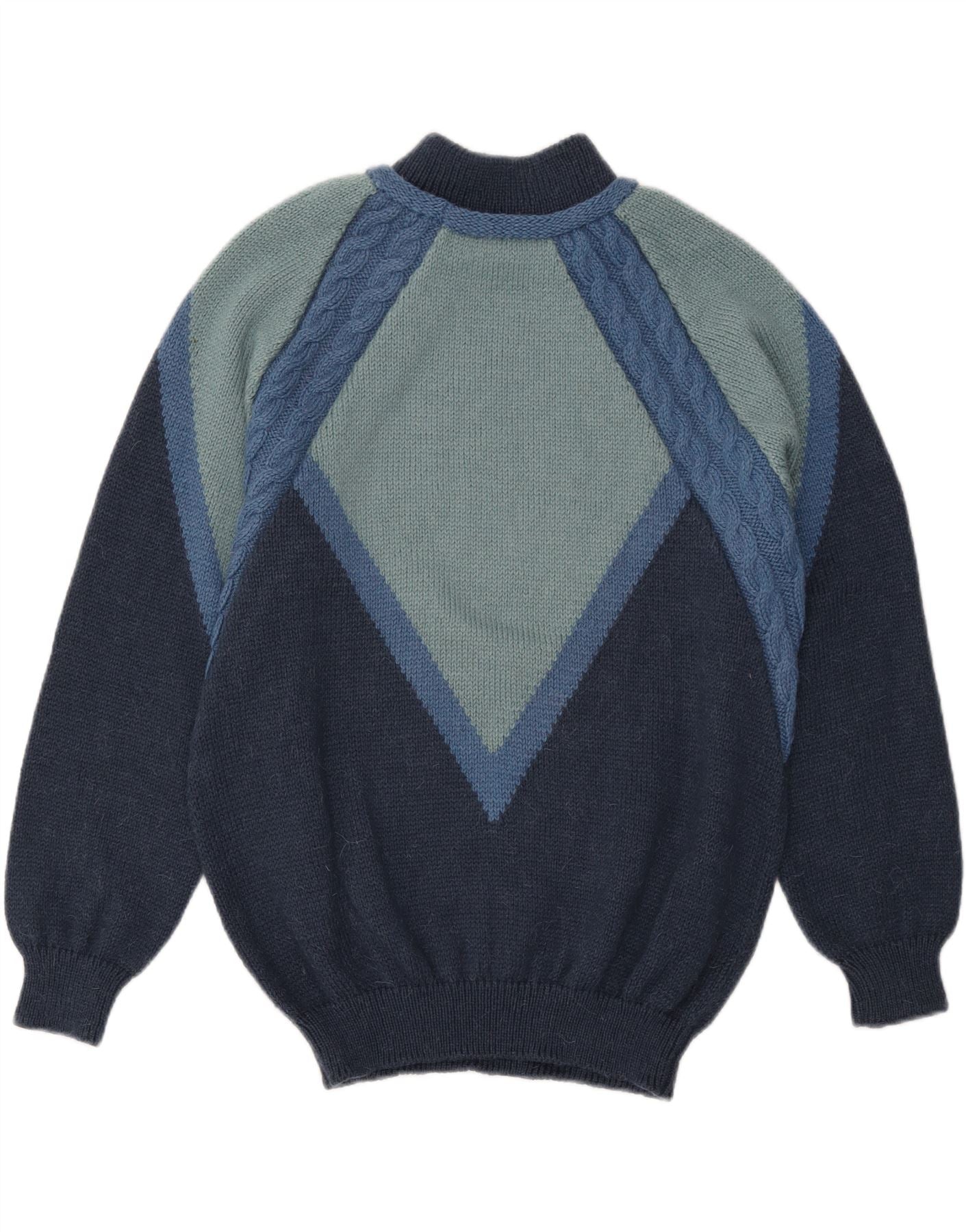 Pulover VINTAGE pentru bărbați cu gât țestoasă, color block, mediu bleumarin
