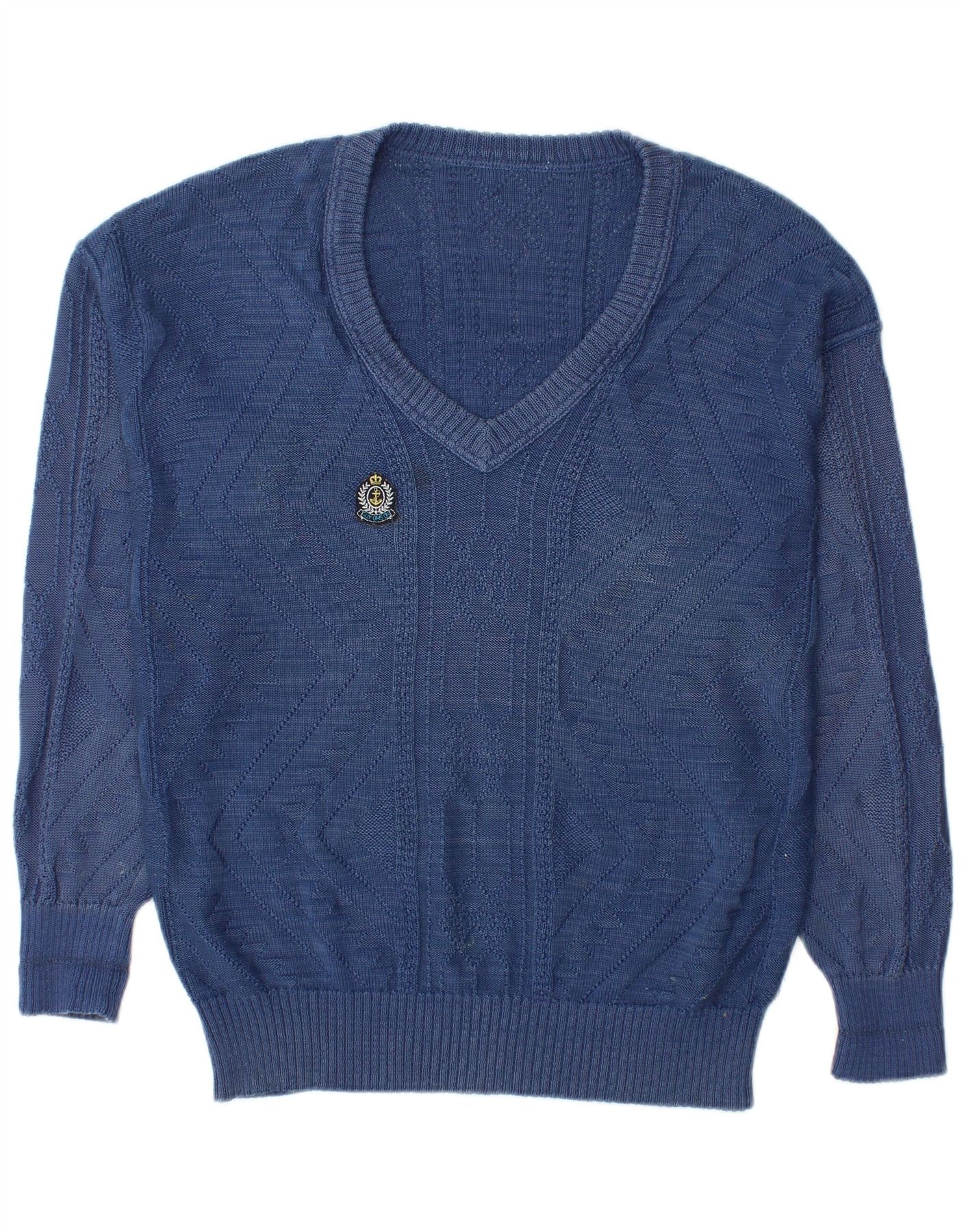 Pulover vintage pentru bărbați cu decolteu în V IT 48 bumbac albastru mediu