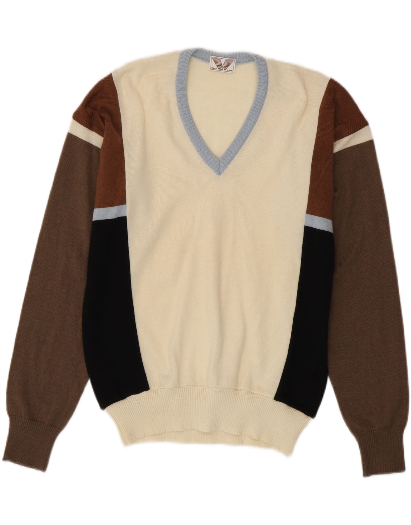 Pulover VINTAGE pentru bărbați cu decolteu în V IT 50 Mediu Multicolor Colorblock