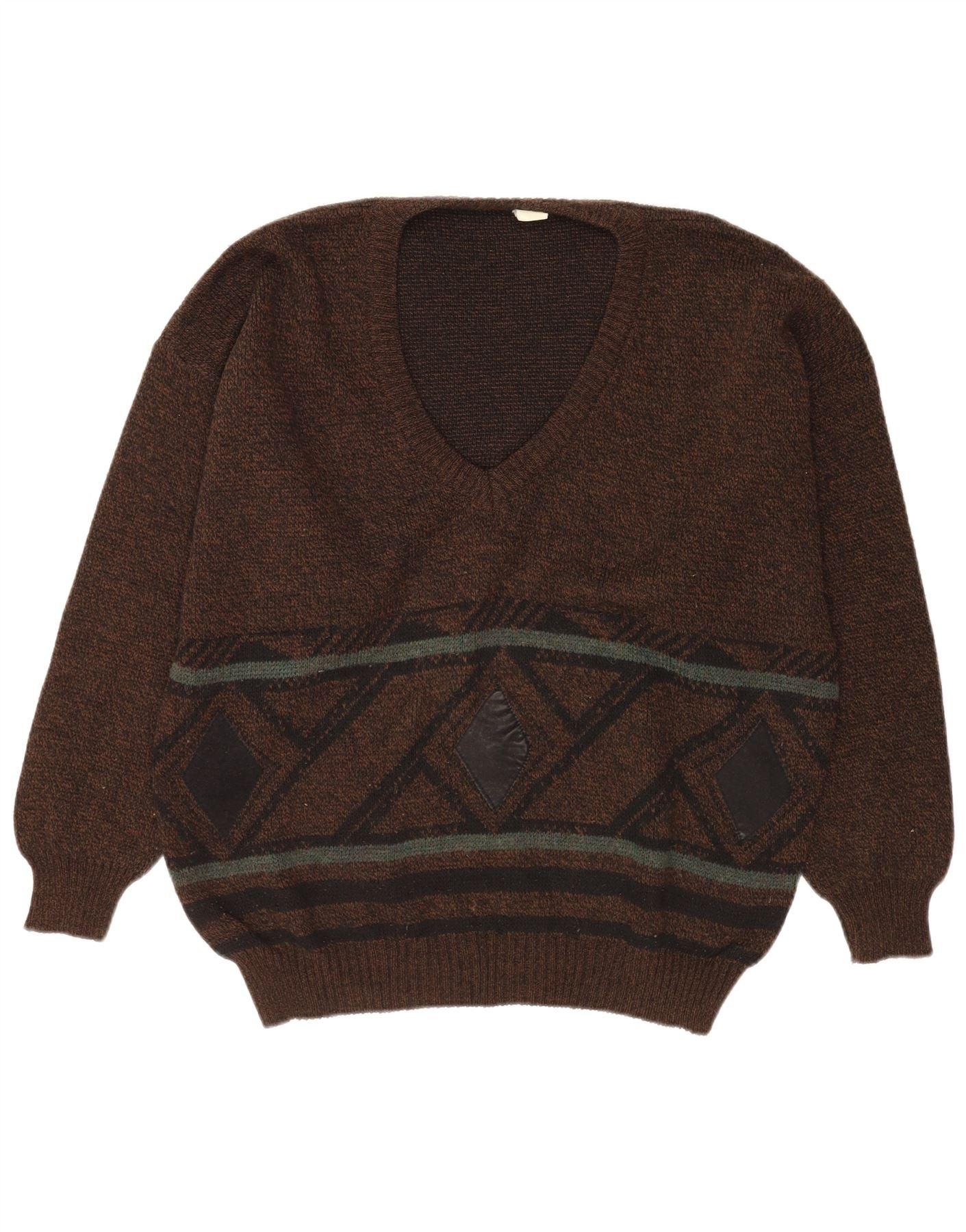VINTAGE Pulover cu decolteu în V pentru bărbați, mare, maro, Argyle/Diamond