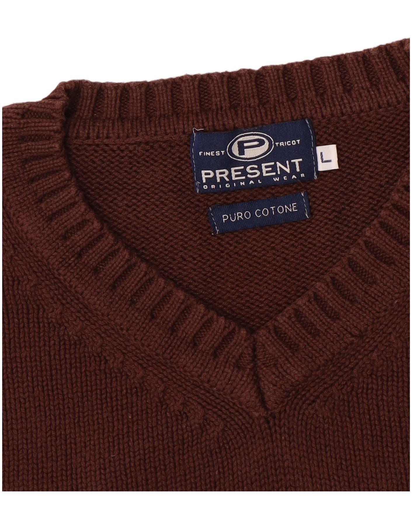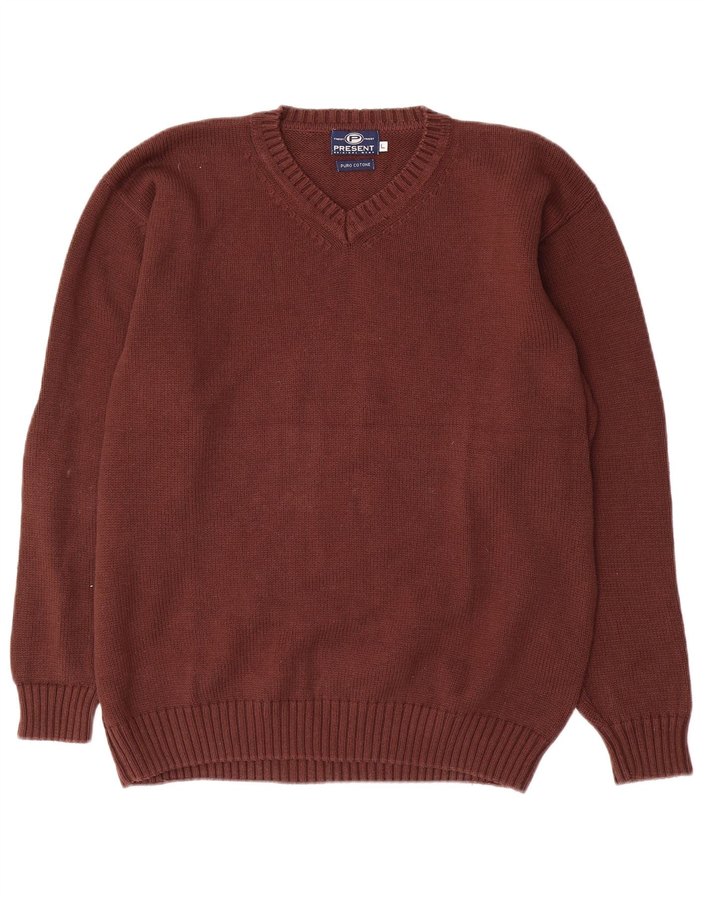 VINTAGE Pulover cu decolteu în V pentru bărbați, bumbac mare, maro