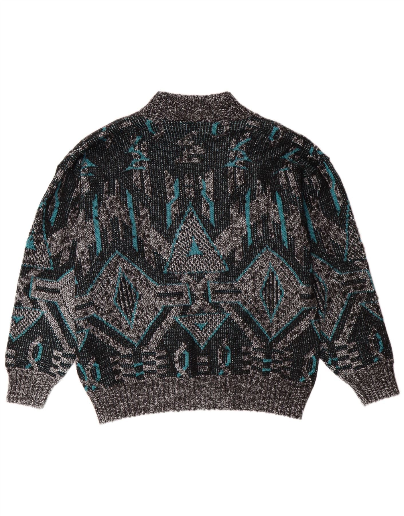 VINTAGE Pulover cu decolteu în V pentru bărbați, mare, gri geometric