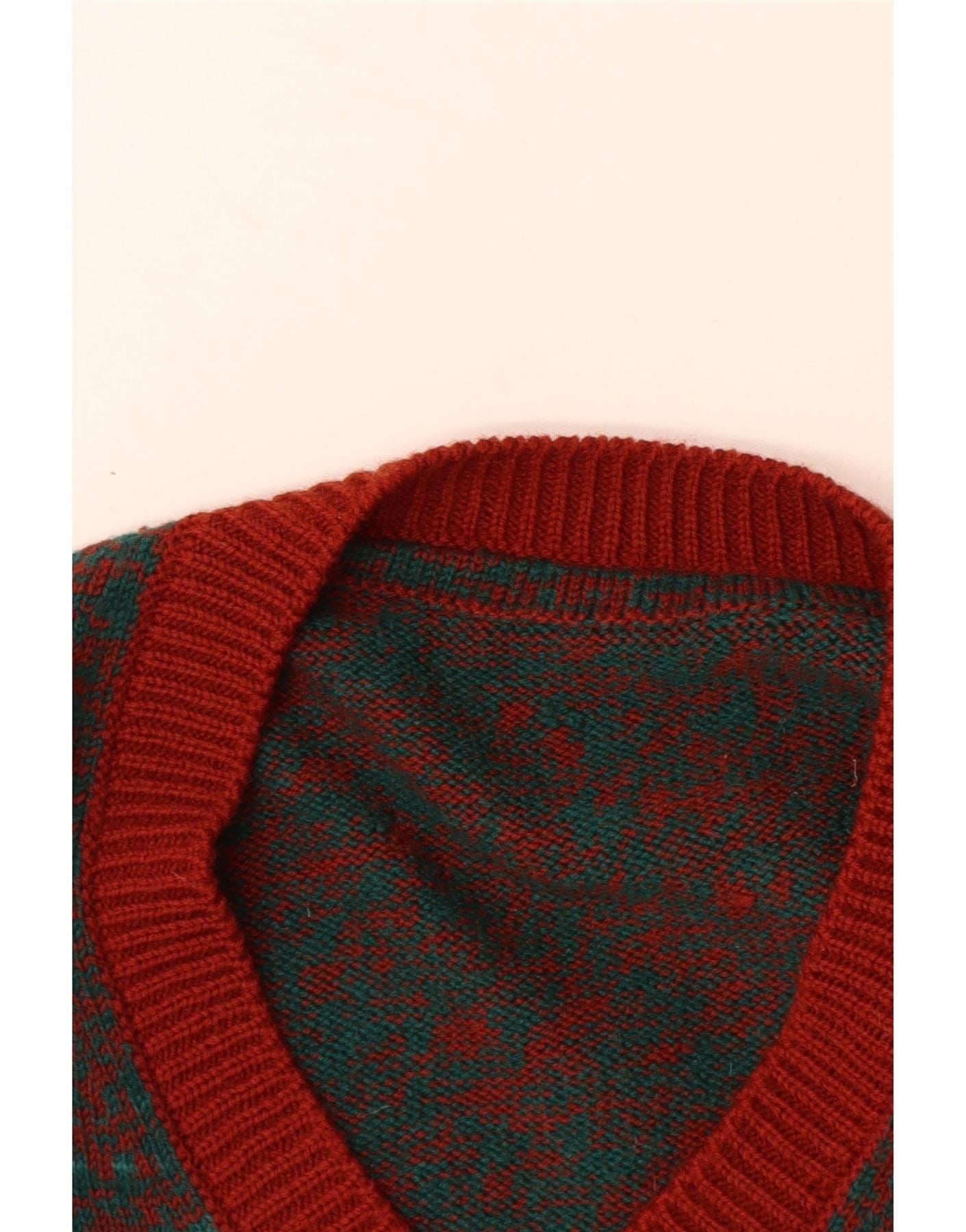 Pulover VINTAGE pentru bărbați, cu decolteu în V, roșu mediu cu pete