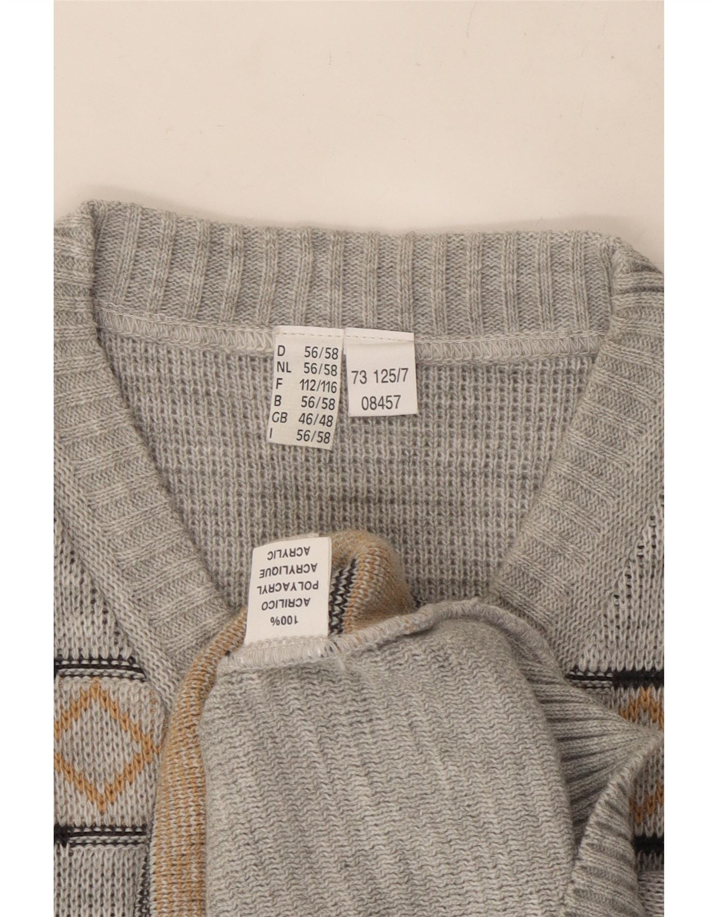 VINTAGE Pulover cu decolteu în V pentru bărbați Marea Britanie 46/48 2XL Gri Argyle/Diamant