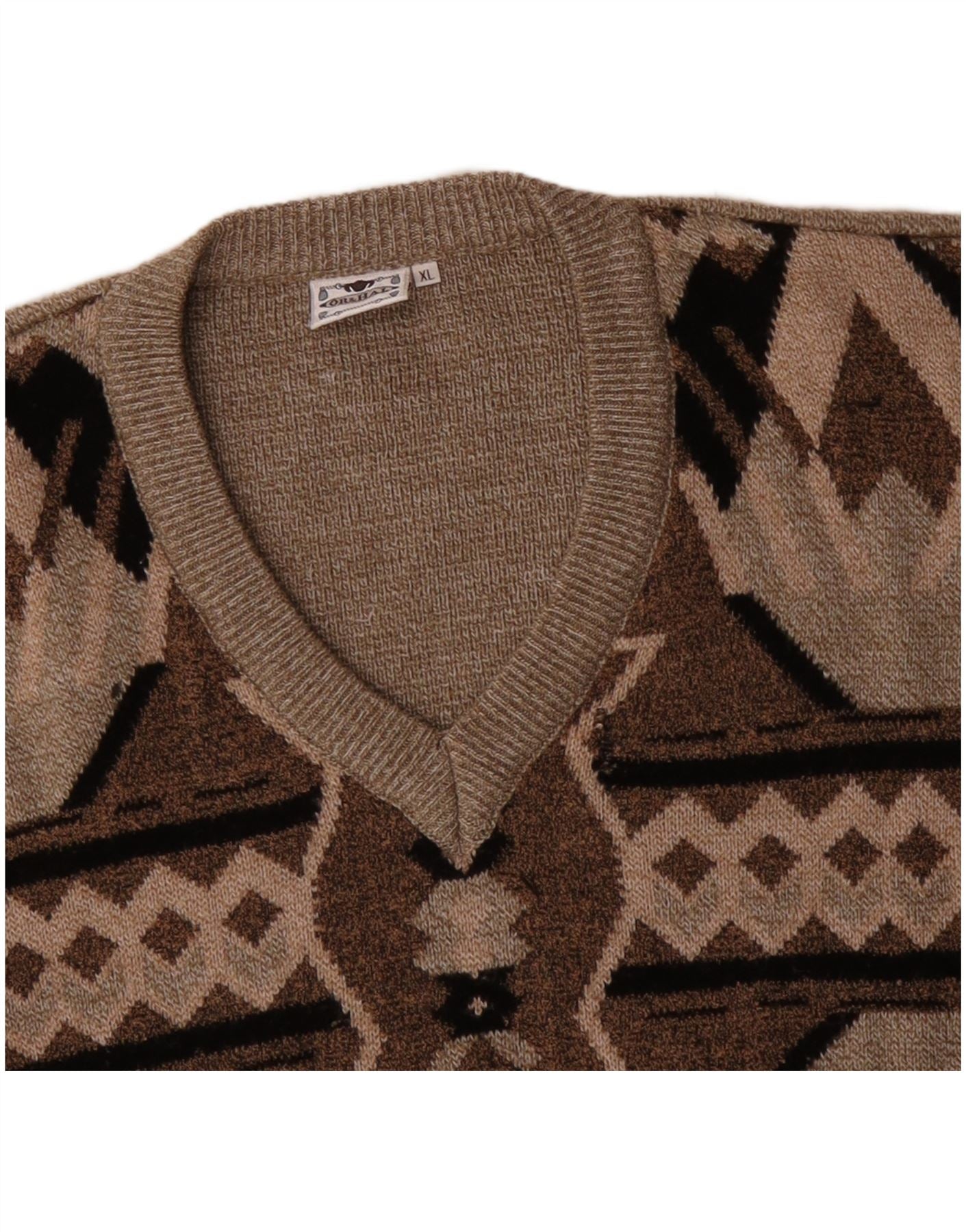 VINTAGE Pulover cu decolteu în V pentru bărbați XL maro geometric
