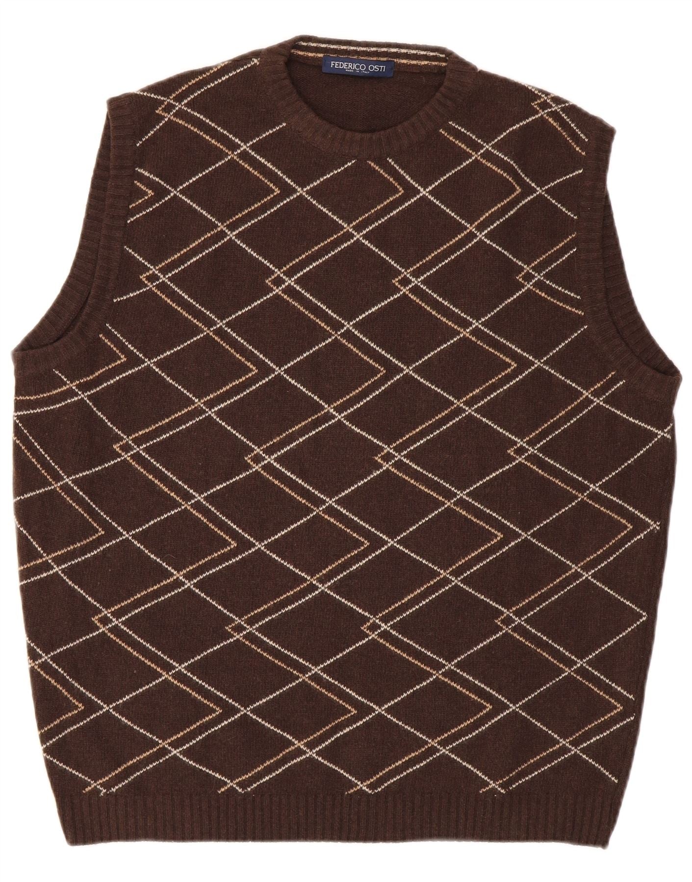 Vintage Mens Vest Tank Top IT 50 Medium Brown Geometric Wool