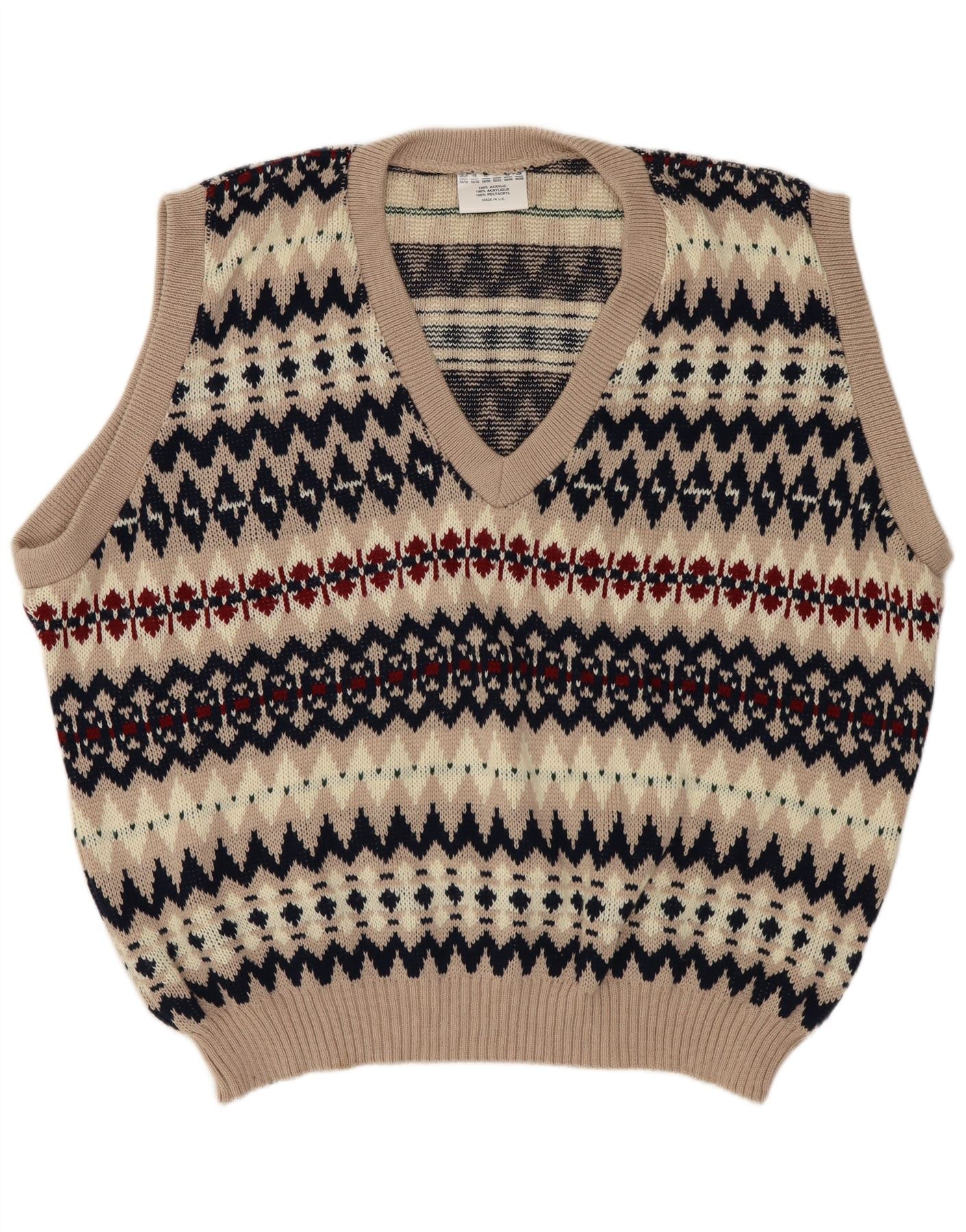 VINTAGE Vestă pentru bărbați Tank Top UK 44/46 XL Bleumarin Fair Isle Acrylic