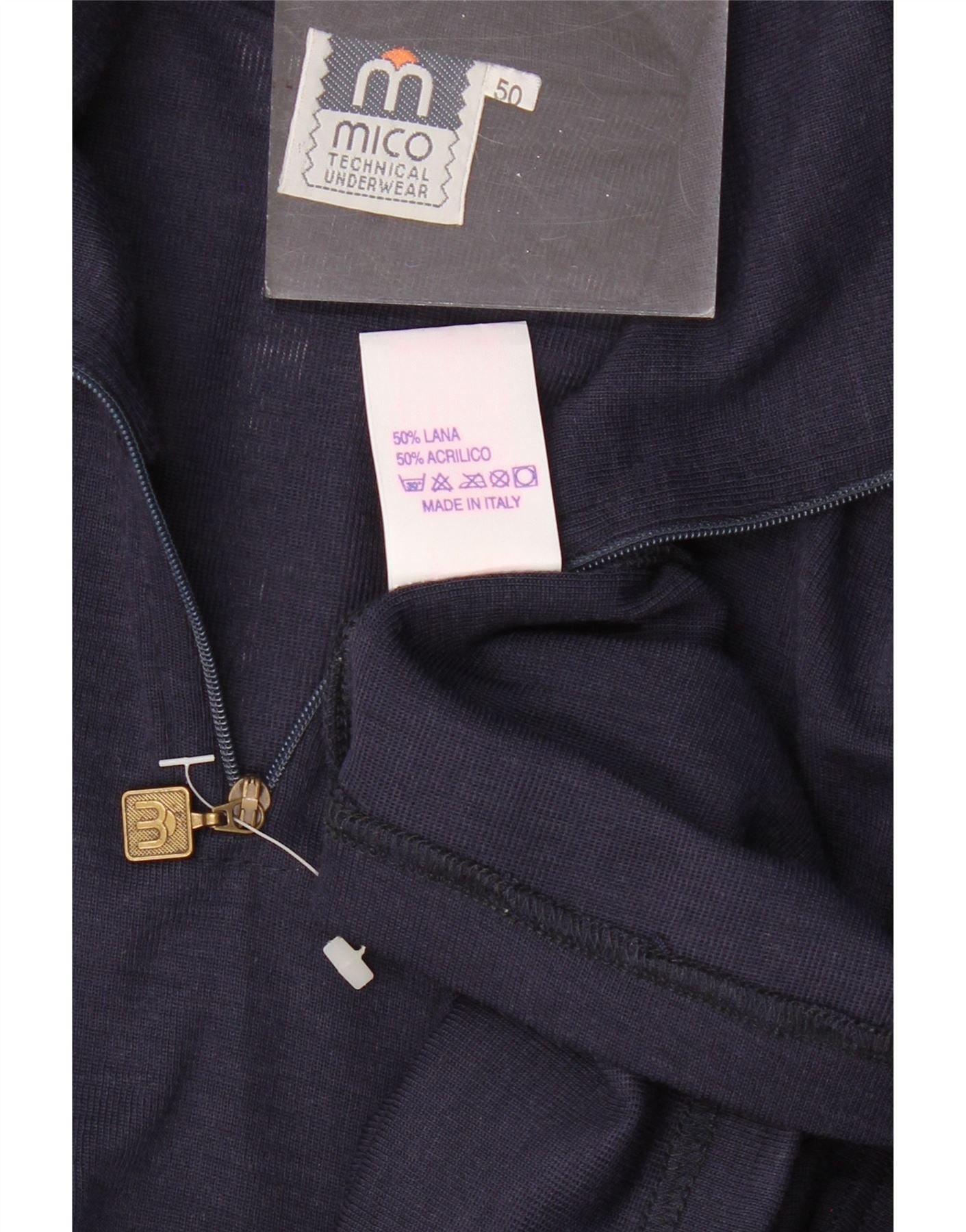 Pulover vintage pentru bărbați, cu fermoar, cu gât, IT 50, lână medie, albastru bleumarin