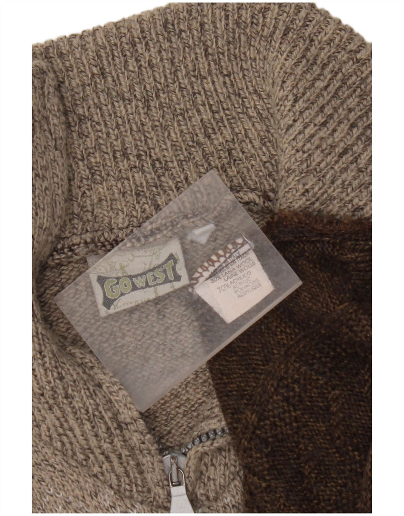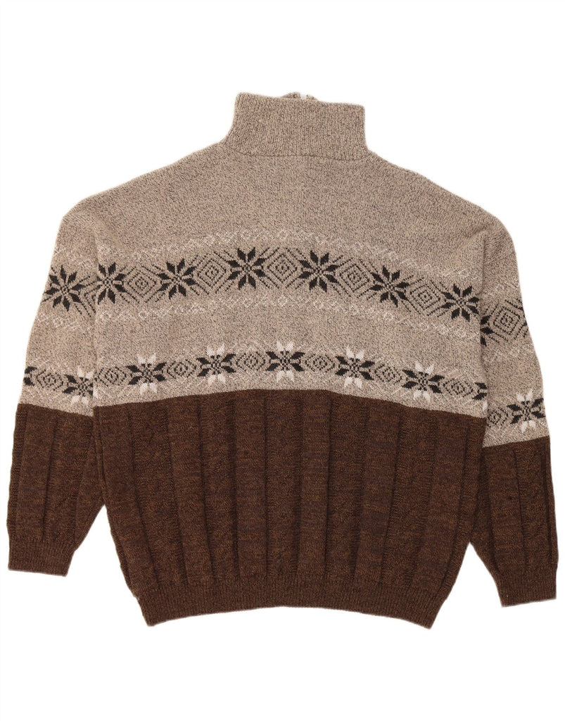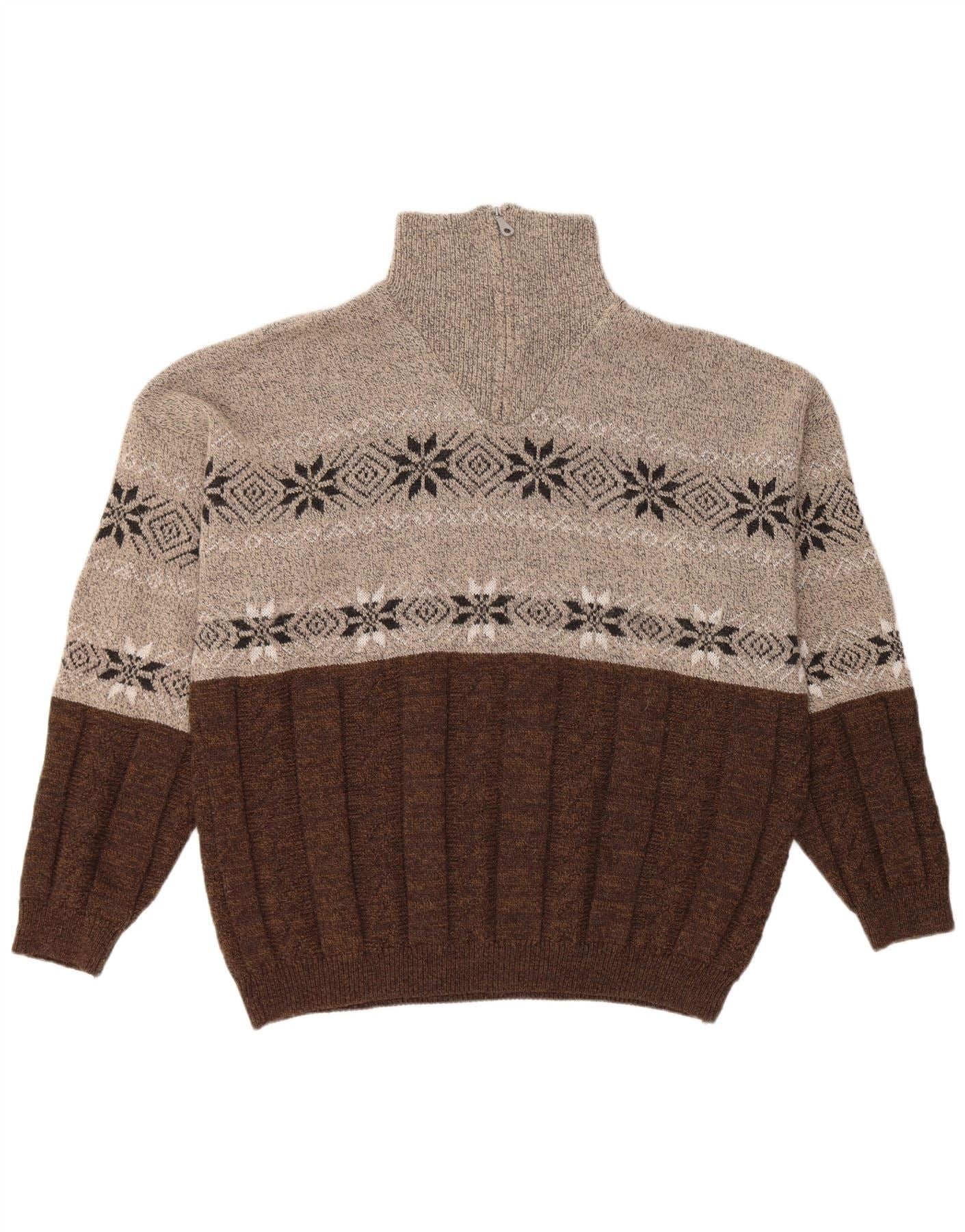 Pulover VINTAGE pentru bărbați, cu fermoar și gât, XL, maro, lână Fair Isle