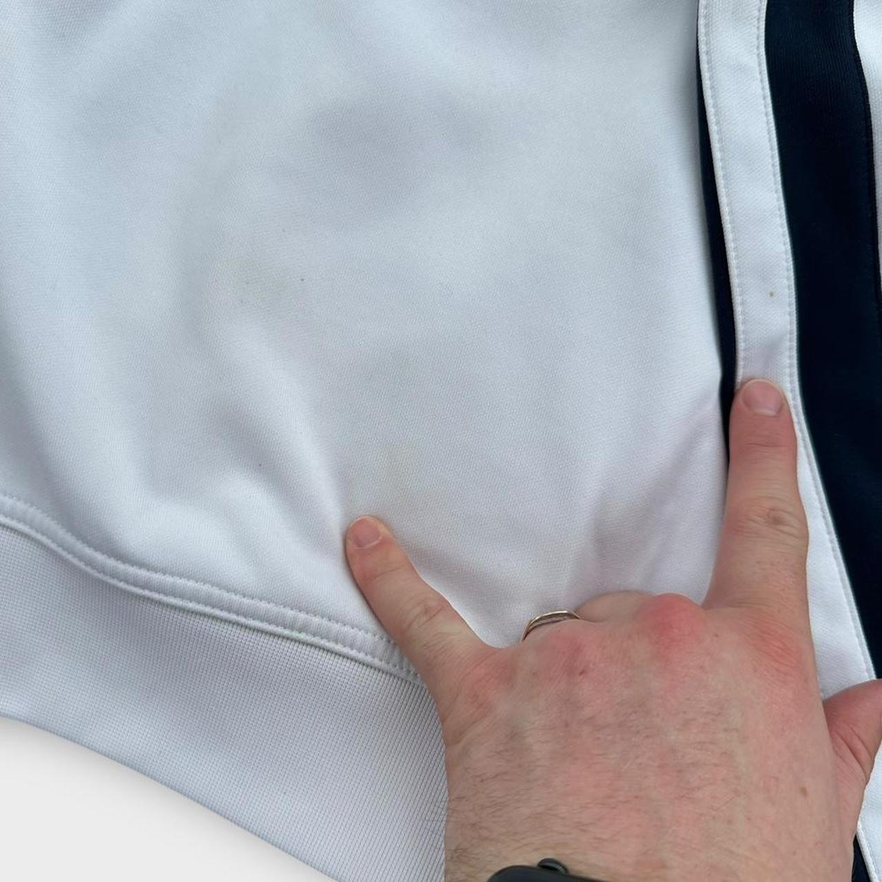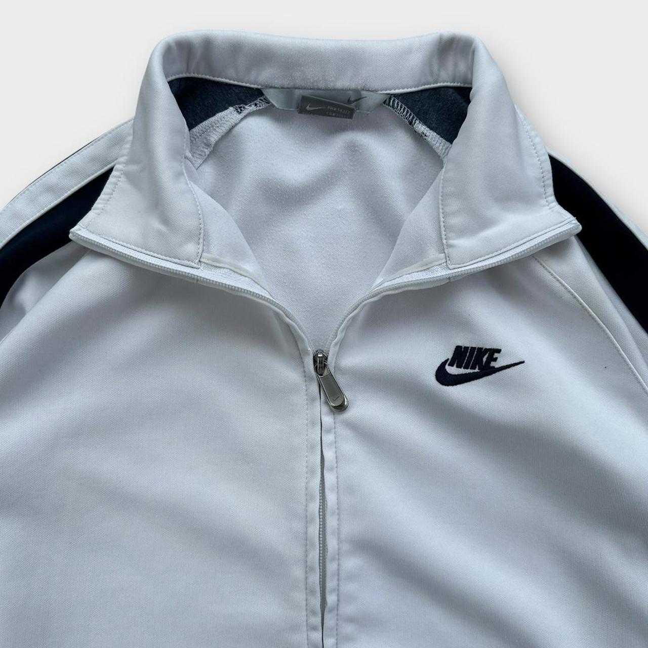 Jachetă de sport Nike de la începutul anilor 2000, cu fermoar, alb și bleumarin, cu logo brodat pe piept