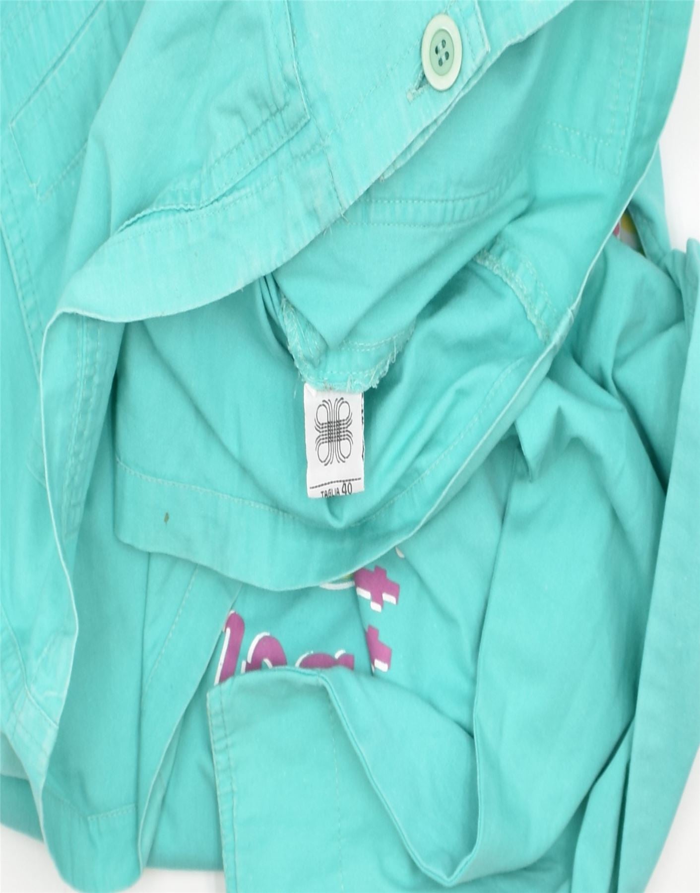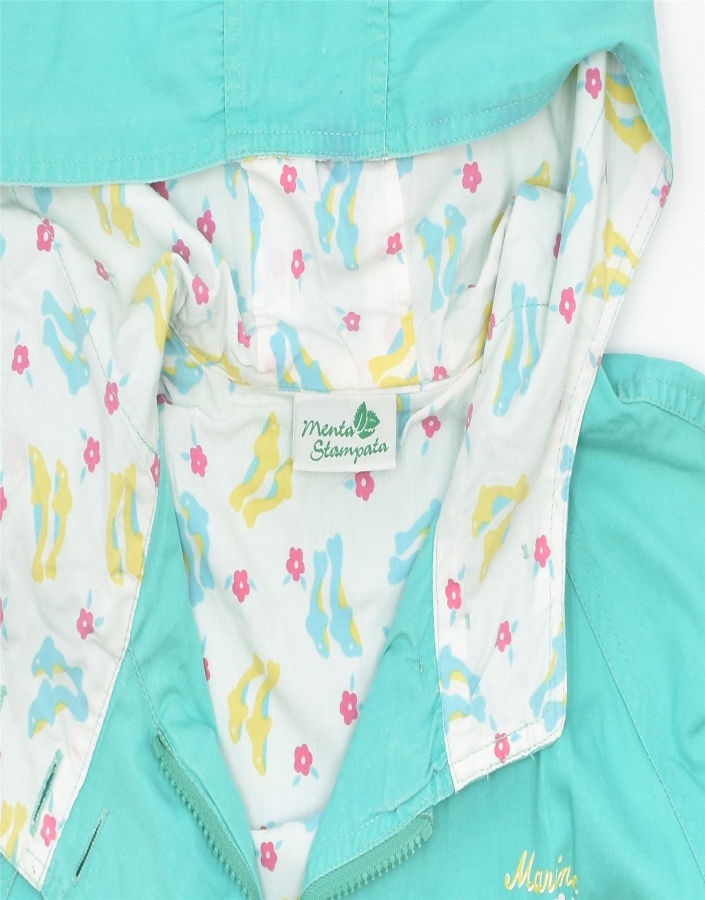 VINTAGE Pardesiu cu glugă cu grafică pentru femei IT 40 mic din bumbac turcoaz