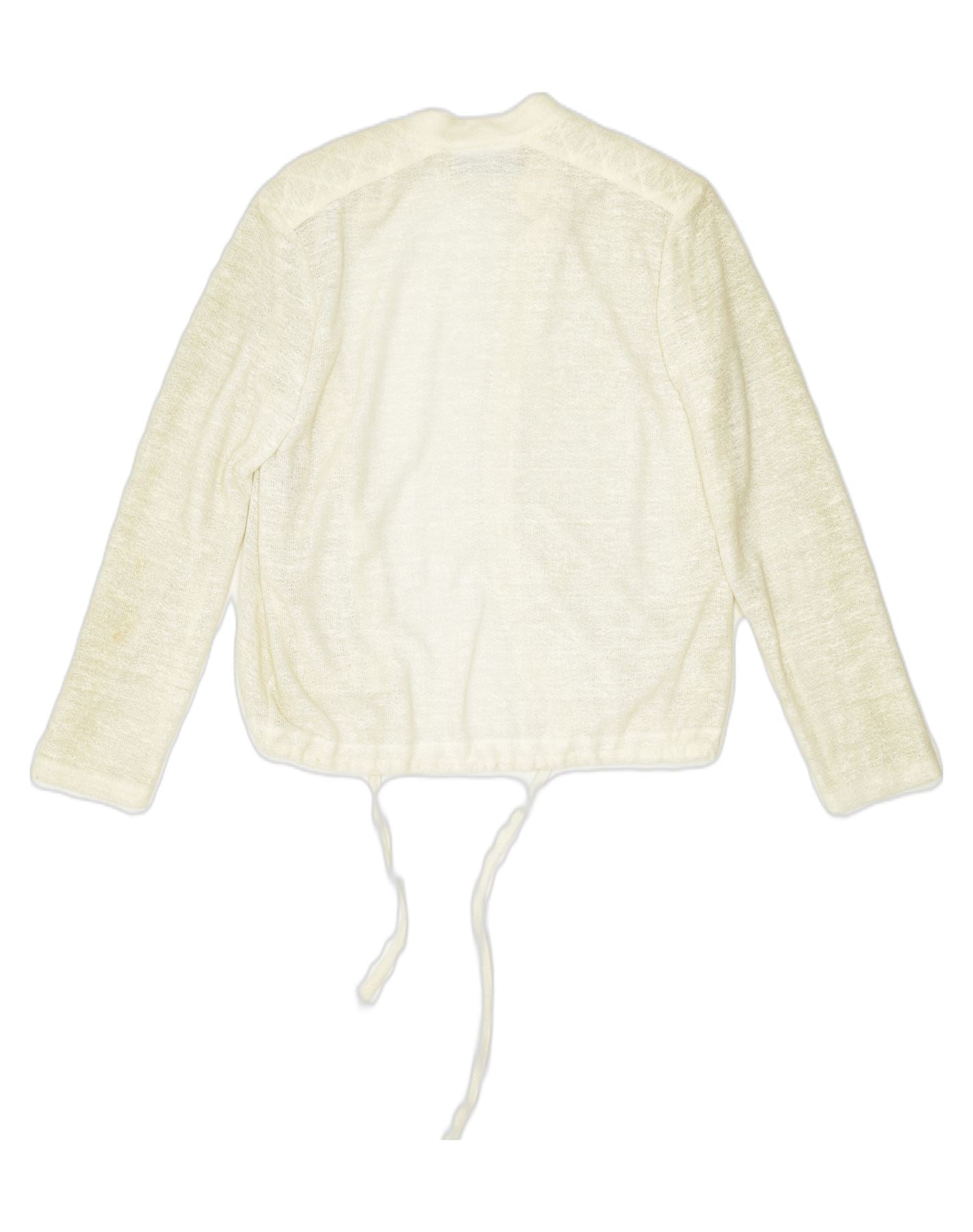 VINTAGE Pulover cardigan crop pentru femei UK 18 XL Poliester alb