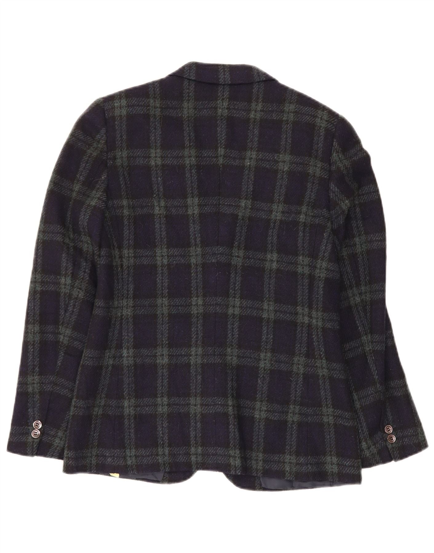 Jachetă pentru femei VINTAGE cu 2 nasturi IT 44 Mediu Lână cu carouri bleumarin