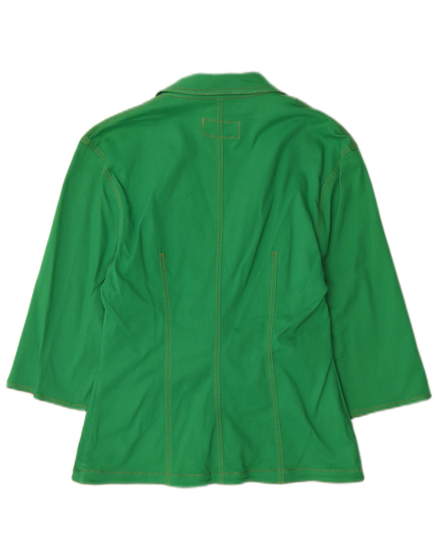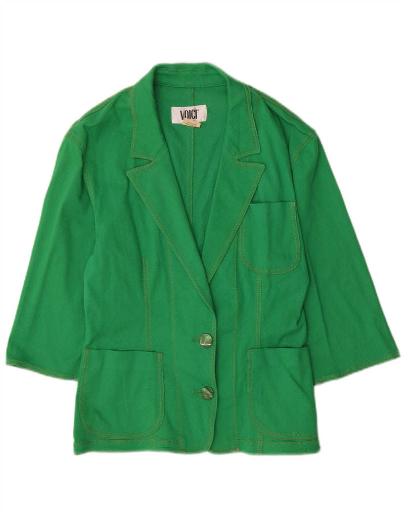 VINTAGE Womens 3/4 Sleeve 2 Button Blazer Jacket UK 12 Medium Green Cotton