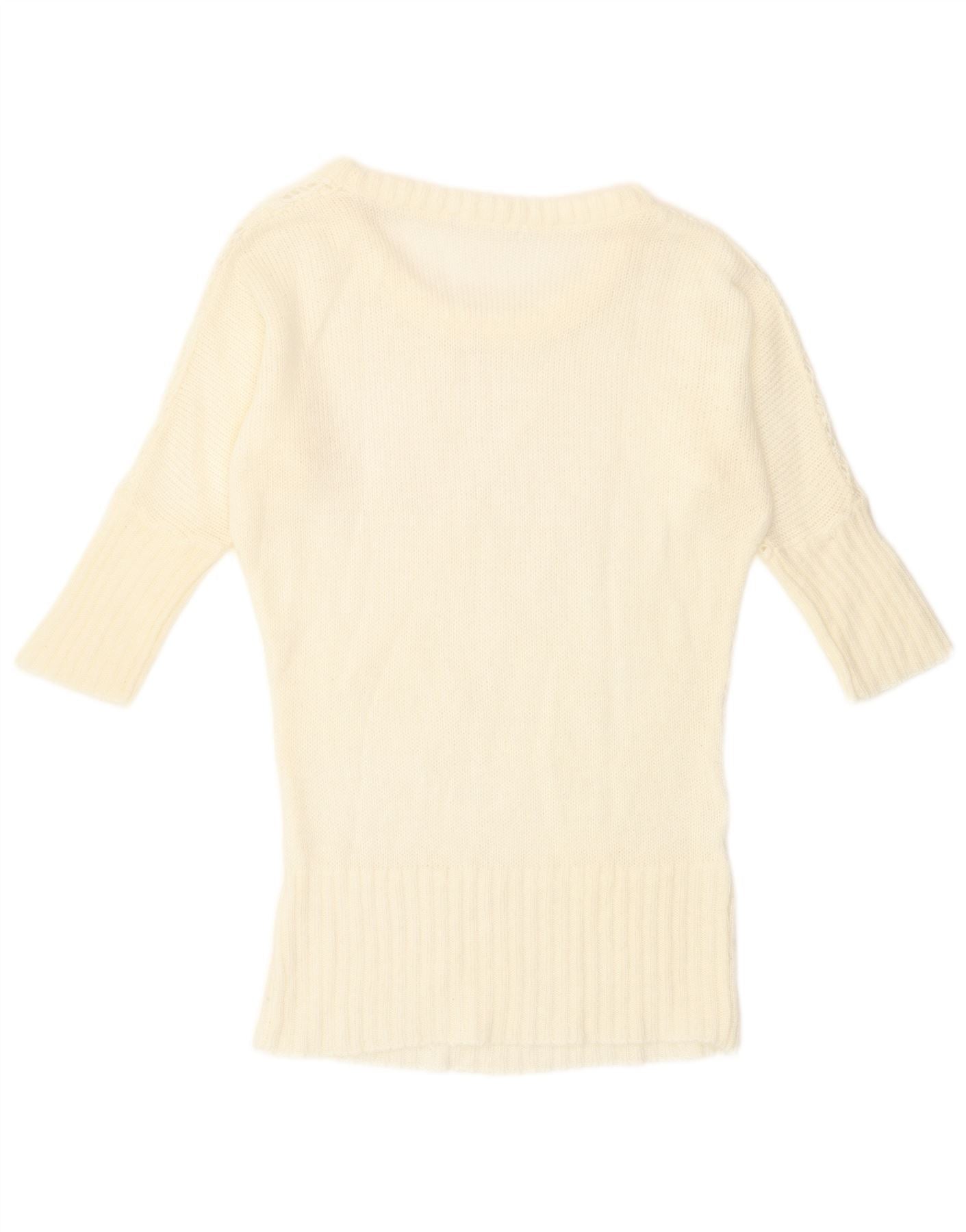 Pulover vintage pentru femei cu mâneci 3/4 cu gât de barcă, alb mediu, UK 12