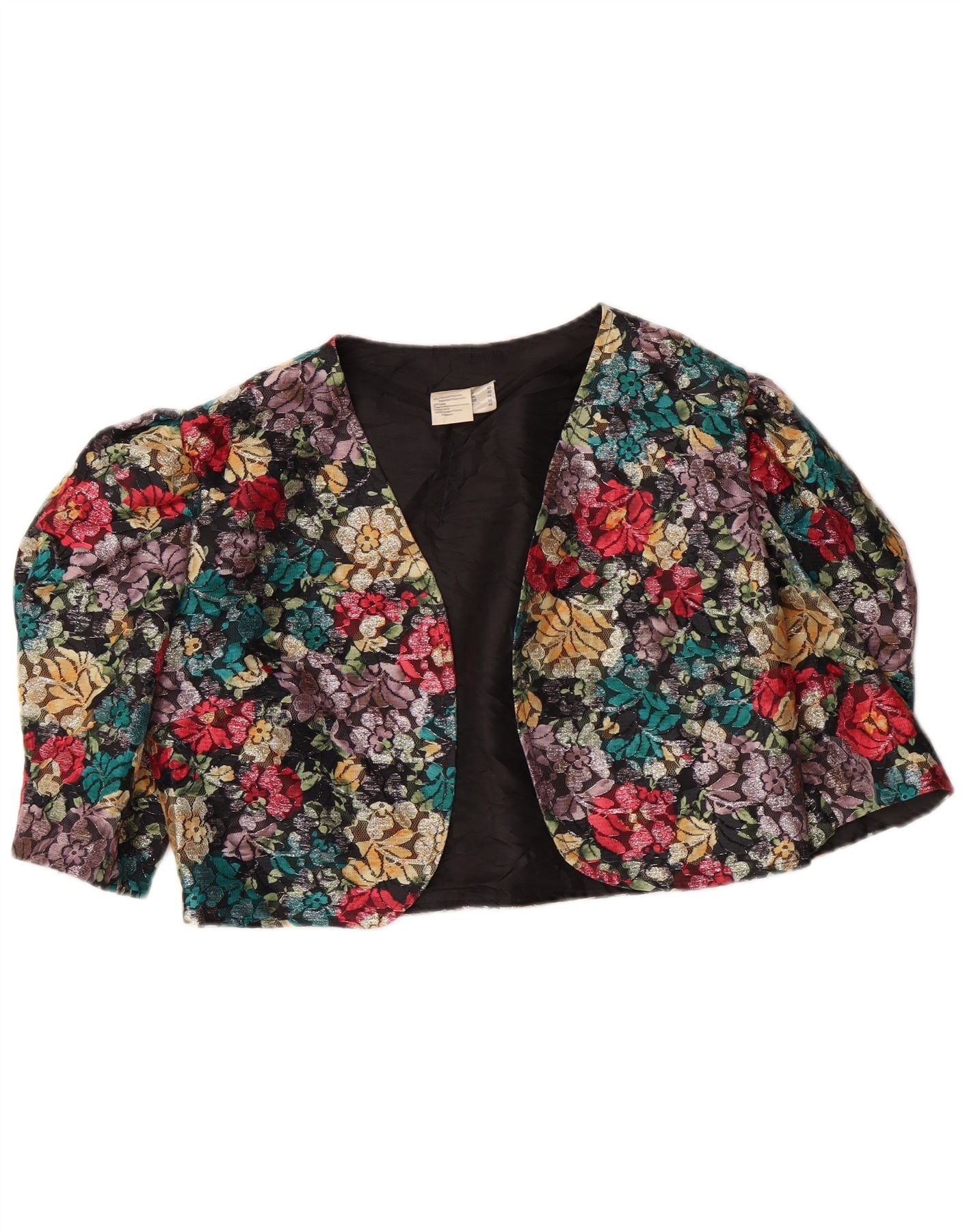 Jachetă Bolero pentru femei VINTAGE cu mâneci 3/4 UK 14 Medium Multicolor Floral
